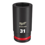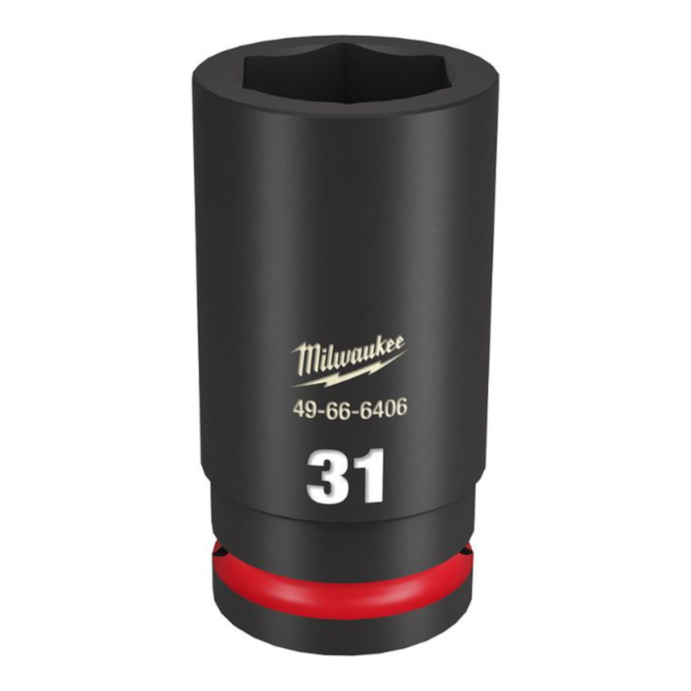 The MILWAUKEE® SHOCKWAVE Impact Duty™ 3/4″ Drive 31MM Deep 6 Point Socket features the boldest, longest-lasting markings and extreme impact durability in high torque applications. The stamped and ink-filled size marking enables an accurate socket selection every time throughout the life of the socket. Engineered with high-strength forged steel for optimized performance in heavy-duty applications, and a non-slip hex geometry prevents fastener rounding. The dual-hole design and ring groove allow for easy socket attachment and removal. All SHOCKWAVE Impact Duty™ Sockets are backed by a Lifetime Guarantee and meet ASME industry standards. Compatible with optional Retaining Ring (49-66-6744).