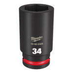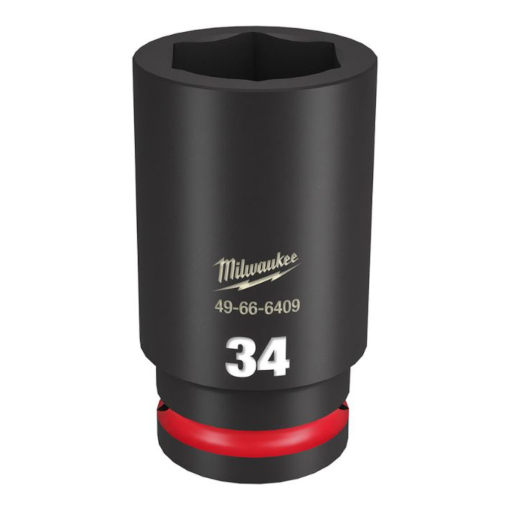 The MILWAUKEE® SHOCKWAVE Impact Duty™ 3/4″ Drive 34MM Deep 6 Point Socket features the boldest, longest-lasting markings and extreme impact durability in high torque applications. The stamped and ink-filled size marking enables an accurate socket selection every time throughout the life of the socket. Engineered with high-strength forged steel for optimized performance in heavy-duty applications, and a non-slip hex geometry prevents fastener rounding. The dual-hole design and ring groove allow for easy socket attachment and removal. All SHOCKWAVE Impact Duty™ Sockets are backed by a Lifetime Guarantee and meet ASME industry standards. Compatible with optional Retaining Ring (49-66-6744).