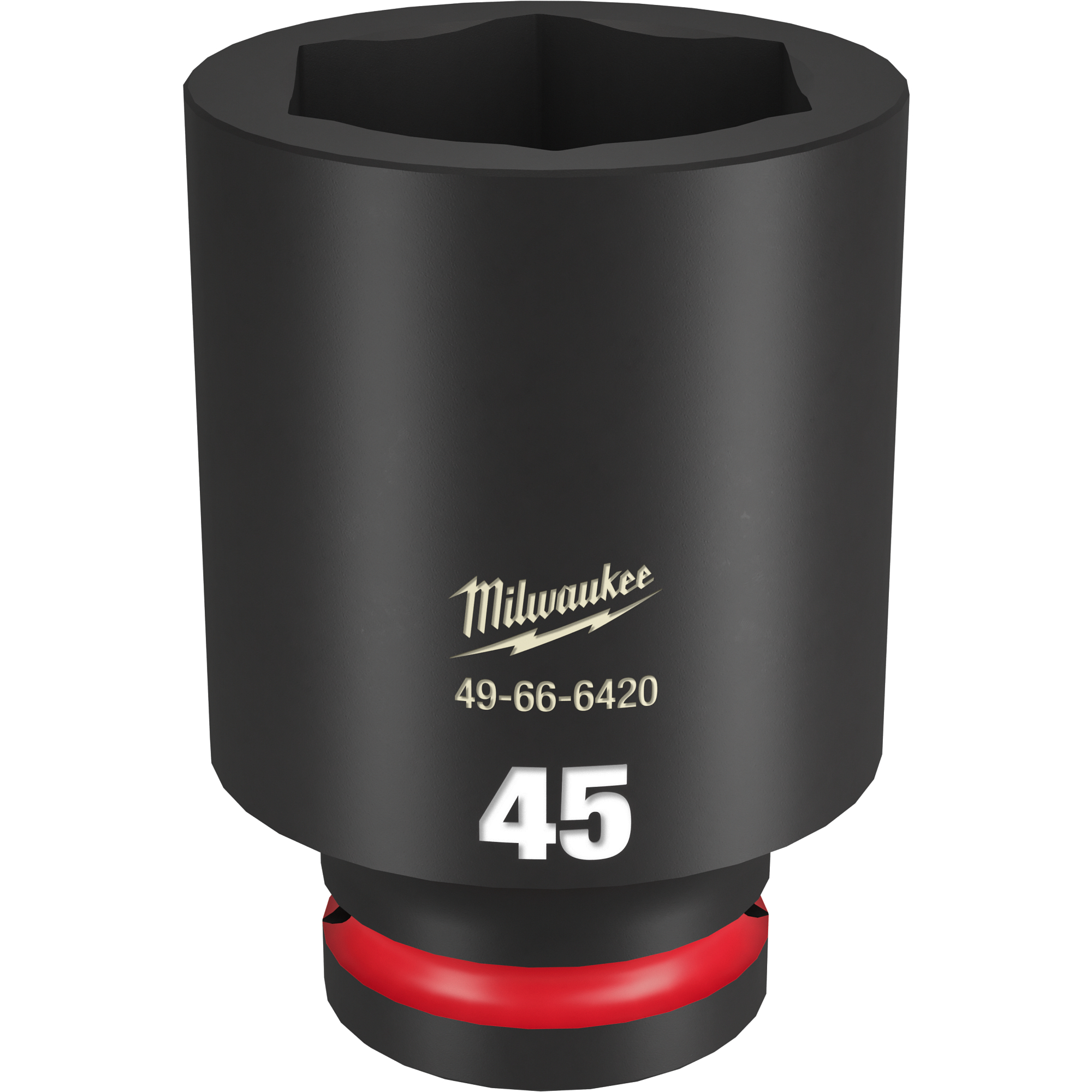 The MILWAUKEE® SHOCKWAVE Impact Duty™ 3/4″ Drive 45MM Deep 6 Point Socket features the boldest, longest-lasting markings and extreme impact durability in high torque applications. The stamped and ink-filled size marking enables an accurate socket selection every time throughout the life of the socket. Engineered with high-strength forged steel for optimized performance in heavy-duty applications, and a non-slip hex geometry prevents fastener rounding. The dual-hole design and ring groove allow for easy socket attachment and removal. All SHOCKWAVE Impact Duty™ Sockets are backed by a Lifetime Guarantee and meet ASME industry standards. Compatible with optional Retaining Ring (49-66-6744).