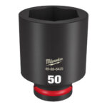 The MILWAUKEE® SHOCKWAVE Impact Duty™ 3/4″ Drive 50MM Deep 6 Point Socket features the boldest, longest-lasting markings and extreme impact durability in high torque applications. The stamped and ink-filled size marking enables an accurate socket selection every time throughout the life of the socket. Engineered with high-strength forged steel for optimized performance in heavy-duty applications, and a non-slip hex geometry prevents fastener rounding. The dual-hole design and ring groove allow for easy socket attachment and removal. All SHOCKWAVE Impact Duty™ Sockets are backed by a Lifetime Guarantee and meet ASME industry standards. Compatible with optional Retaining Ring (49-66-6744).