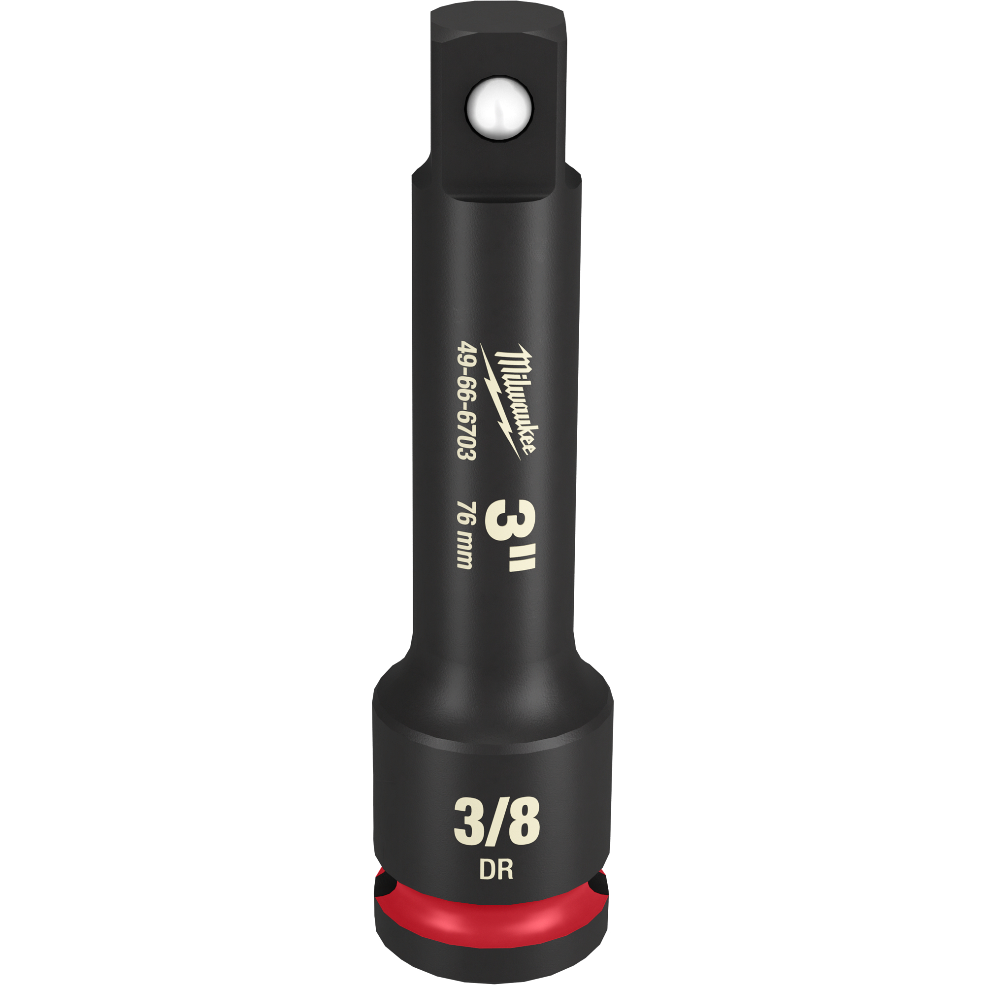 The MILWAUKEE® SHOCKWAVE Impact Duty™ 3/8″ Drive 3″ Extension provides better access in hard to reach places and offers extreme impact durability in high torque applications. The laser-etched size markings allow for fast identification of drive size and length. The dual-hole design and ring groove allow for easy attachment and removal of the extensions. All SHOCKWAVE Impact Duty™ Socket Extensions are backed by a Lifetime Guarantee and meet ASME industry standards.