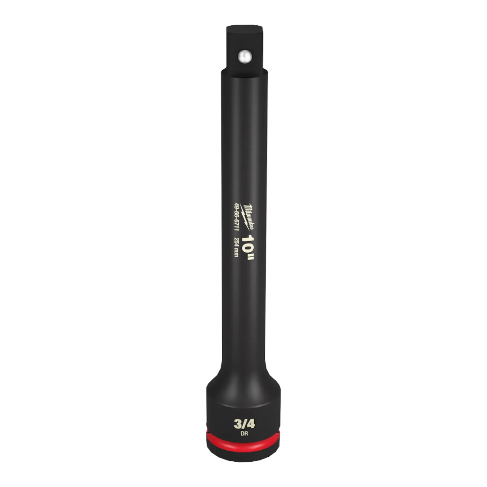 The MILWAUKEE® SHOCKWAVE Impact Duty™ 3/4″ Drive 10″ Extension provides better access in hard to reach places and offers extreme impact durability in high torque applications. The laser-etched size markings allow for fast identification of drive size and length. The dual-hole design and ring groove allow for easy attachment and removal of the extensions. All SHOCKWAVE Impact Duty™ Socket Extensions are backed by a Lifetime Guarantee and meet ASME industry standards.