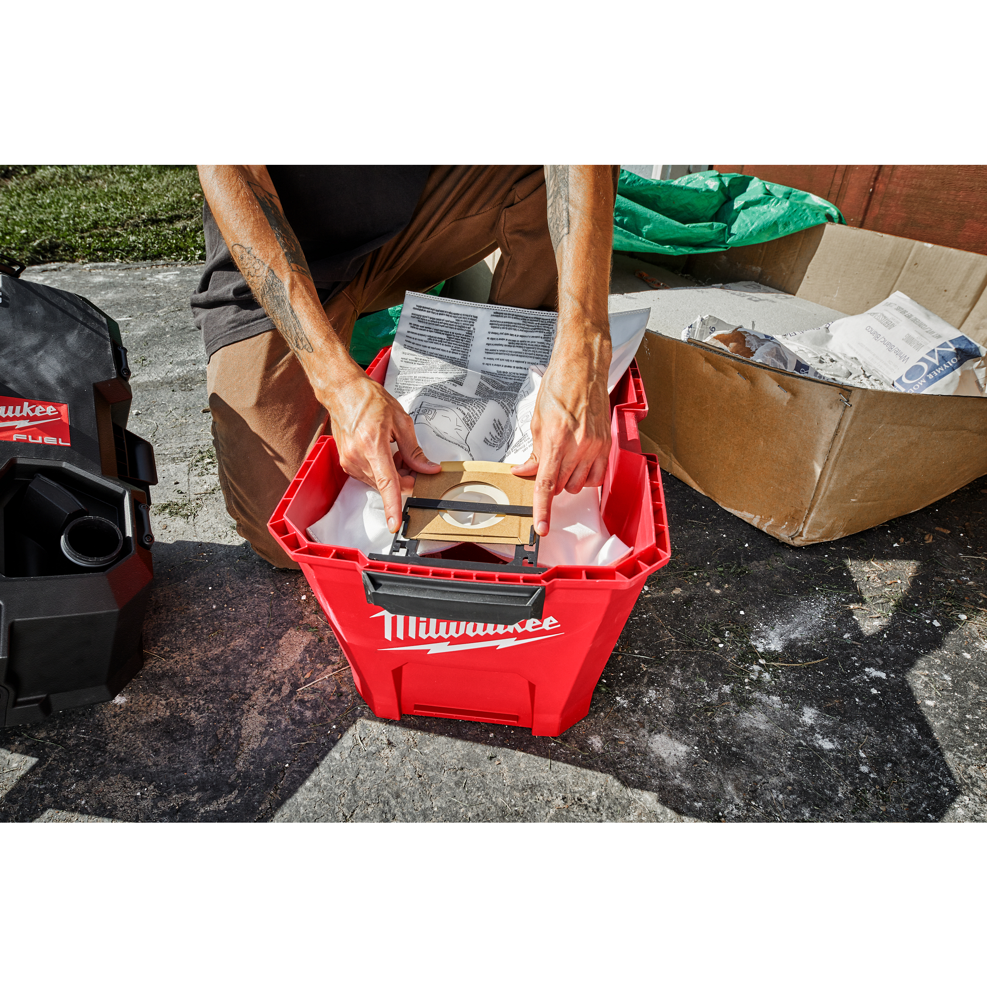The MILWAUKEE® Fleece Dust Bags (5PK) are compatible with the Milwaukee M18 FUEL™ 6 Gallon Wet/Dry Vacuum (0910). With 98.5% filter efficiency, these disposable fleece dust bags are ideal for fine dust collection. The vacuum cleaner dust bags are fully enclosed and act as a pre-filter to prolong filter life and are easy to dispose of with the pull tab to prevent dust from escaping. This kit includes five Fleece Dust Bags.