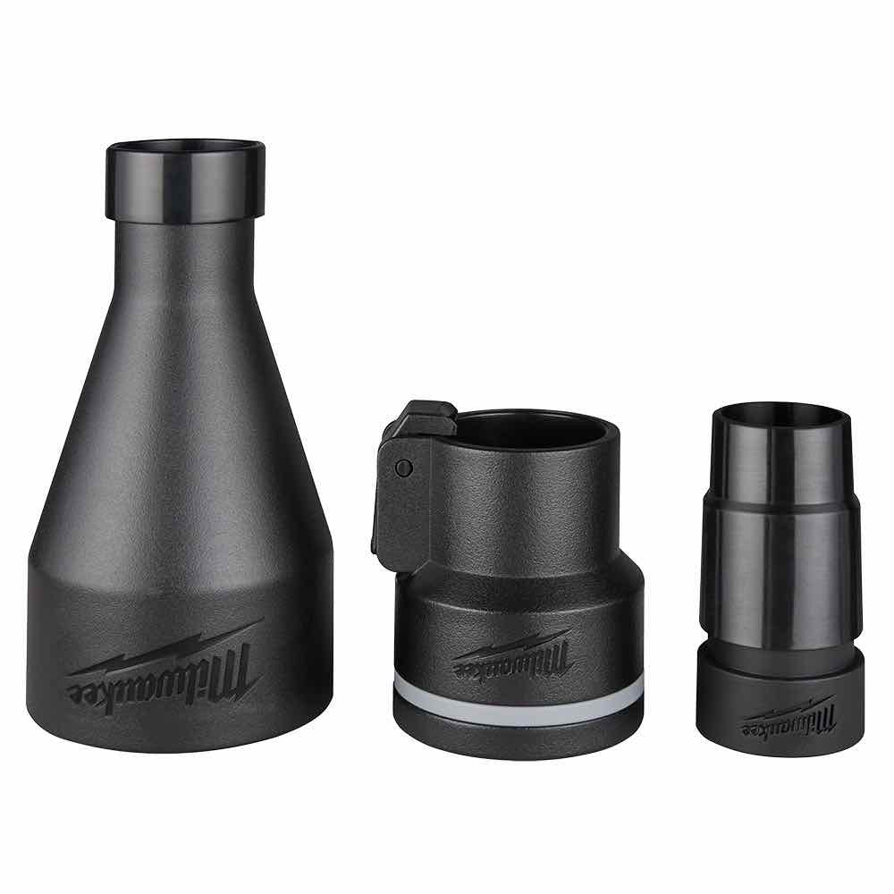 The 1-7/8” Dust Extraction Adapter Kit allows our 1-7/8” Hoses (49-90-1996, 49-90-1984, 49-90-1986) to connect to most power tools for dust collection directly from the tool. The dust extraction kit includes three adapters for multiple different uses and tool fitment. The Hose Clip Adapter screws onto the end of the hose and connects directly to Milwaukee power tools or the other two adapters. The Power Tool Adapter clips into the Hose Clip Adapter and provides a friction fit to most power tool dust ports. The Table Saw Adapter clips into the Hose Clip Adapter and provides a secure connection to 2-1/2” table saw dust ports. The MILWAUKEE 1-7/8” Dust Extraction Adapter Kit includes a gray color ring for quick identification of its 1-7/8” diameter.