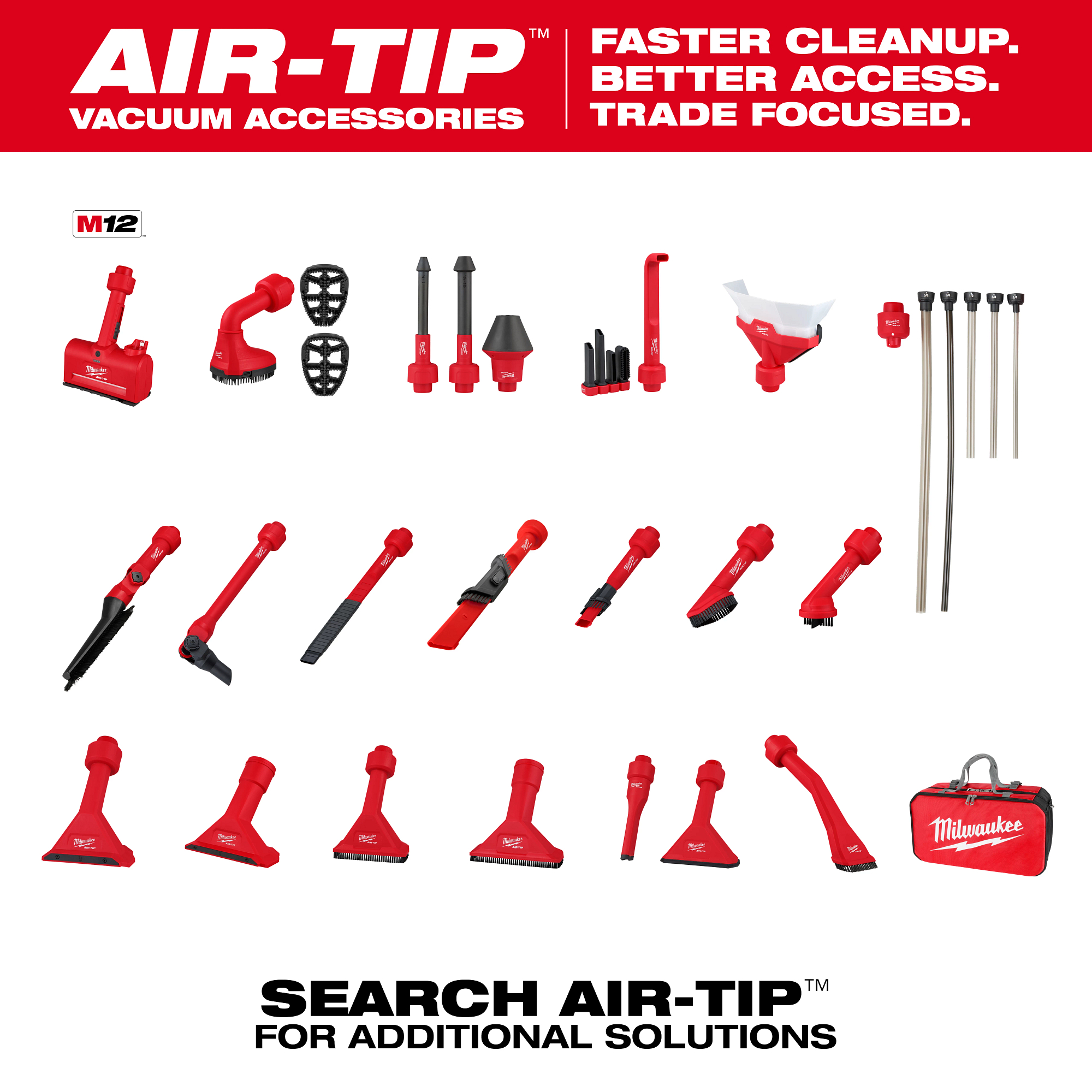 The MILWAUKEE® AIR-TIP™ Dust Collector collects dust with its rubber seal that maintains suction to a wall for less cleanup time later. After connecting the dust collector to a wet/dry vacuum, it uses the vacuum’s suction so professionals can attach it to a wall for hands-free work. Cut or drill above the funnel design while the vacuum is on to capture more debris. The rubber seal maintains suction throughout the application putting less dust in the air, on the ground and freeing up a hand that would otherwise be holding a vacuum nozzle. The AIR-TIP™ Dust Collector is compatible with other wet/dry vacuum brands with 1-1/4”, 1-7/8”, 2-1/2” diameters, and is part of the AIR-TIP™ family of Trade Focused Vacuum Accessories.