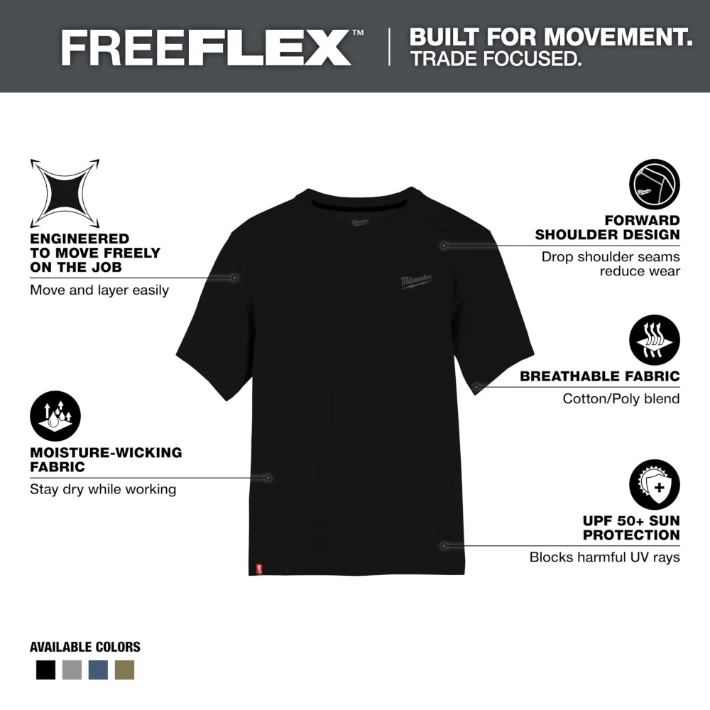 Our Short Sleeve Hybrid Work Tee is a lightweight and breathable solution that allows you to STAY COMFORTABLE and KEEP COOL. This work t-shirt is specifically created for mobility and durability with its drop shoulder design to reduce wear on the seams. The MILWAUKEE® Hybrid Work Tee Shirts are built to protect against the elements, offering UPF 50 protection for those warm days on the jobsite and moisture-wicking fabric so you can stay dry while working. Choose from a variety of colors, including black, blue, gray, and green, available in sizes small to 3XL.