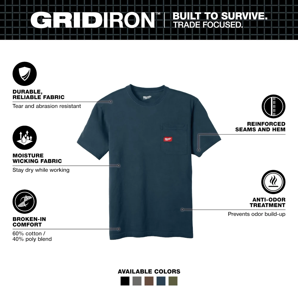 STORE SKU:Milwaukee® 605BL-X GRIDIRON™ Short-Sleeve Pocket T-Shirt – Blue, 6 Options
