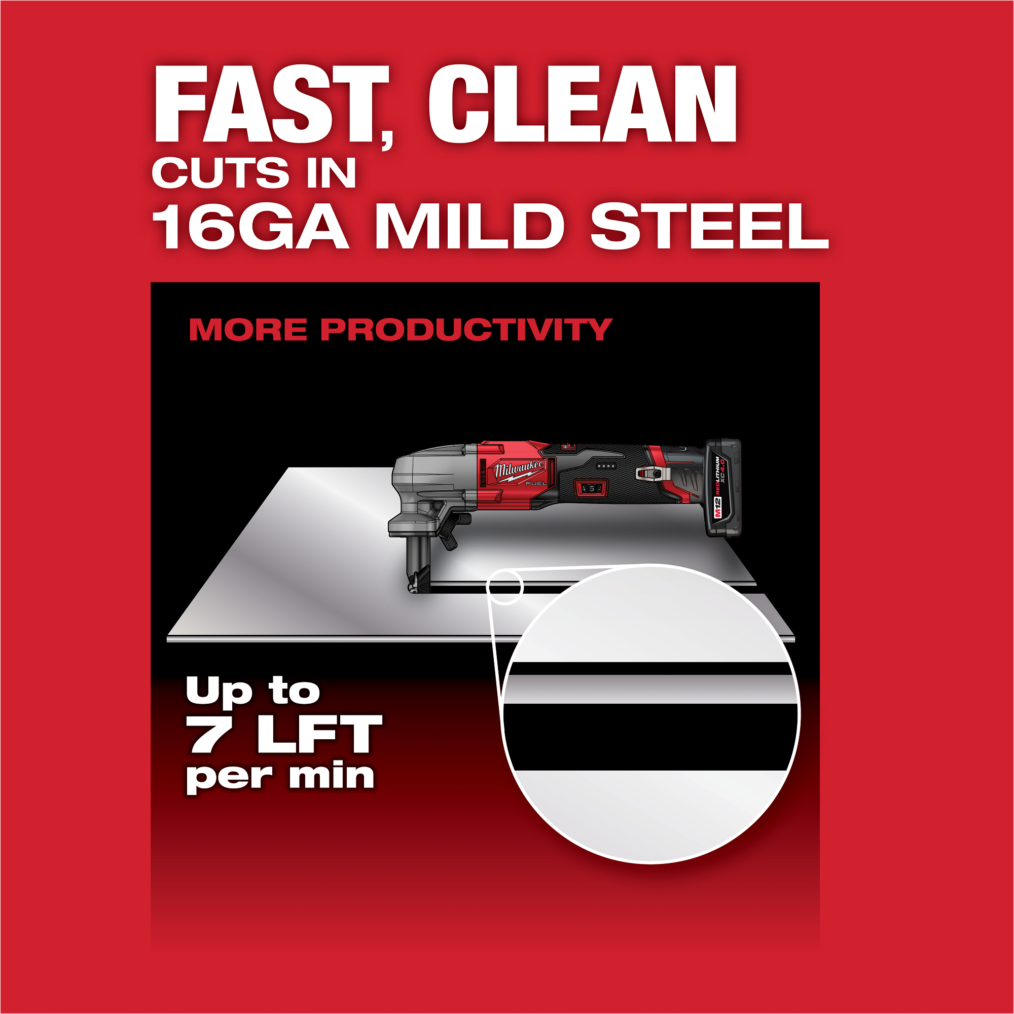 The MILWAUKEE® M12 FUEL 16-Gauge Variable Speed Nibbler is a compact light weight tool that provides the same cutting capacity as its 18V competitors on a 12V system. Delivering fast clean cuts in 16-gauge mild steel, the nibbler is rated for 18-gauge stainless steel and 12-gauge aluminum. Milwaukee M12 FUEL 16-Gauge Variable Speed Nibbler has the power to perform in heavy applications such as cutting up to 22-gauge spiral duct seams. The nibbler tool provides a variable speed dial, tool-free die holder orientation change, and LED work light offers maximum control and productivity. The unique chip collection bag, kitted with the tool, reduces jobsite cleanup. The Milwaukee compact and light weight form factor enables greater access and mobility on the jobsite.