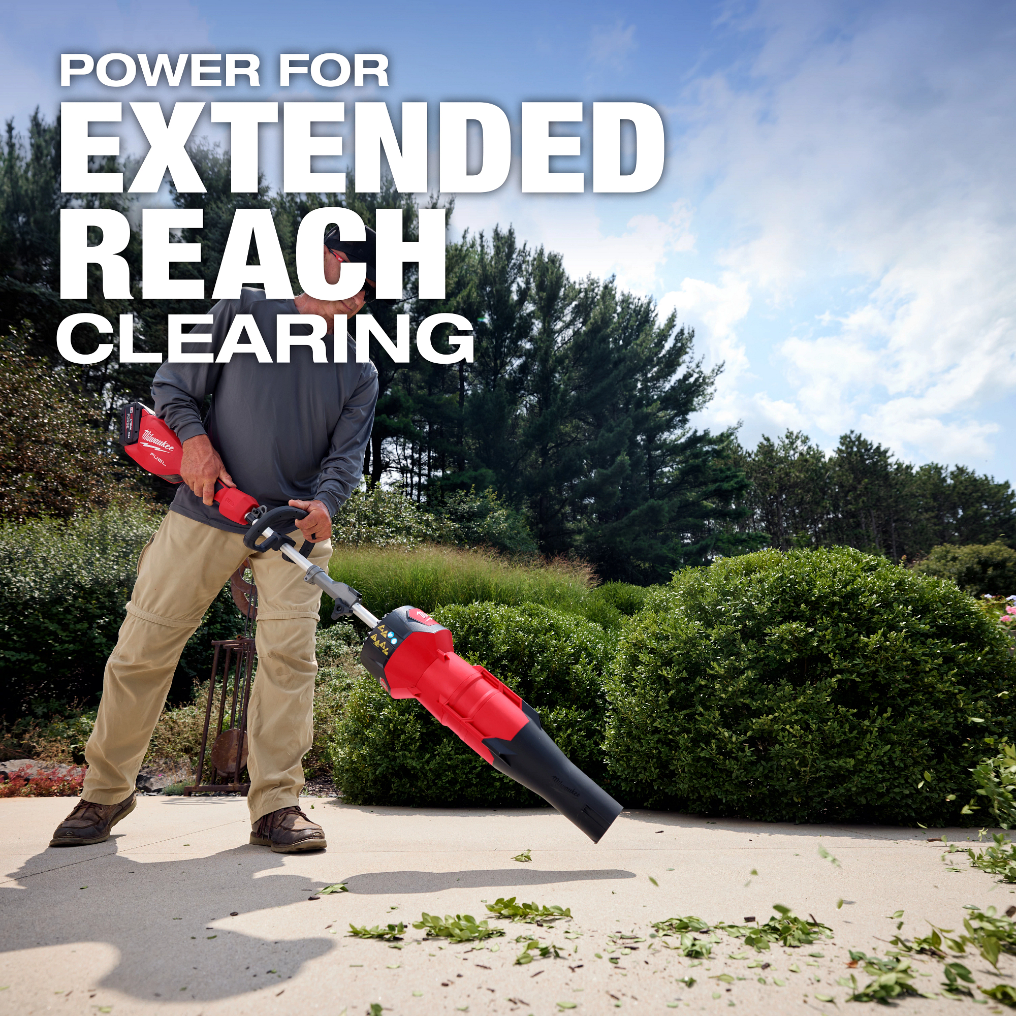 The MILWAUKEE® M18 FUEL™ QUIK-LOK™ Blower Attachment is powered by the MILWAUKEE® M18 FUEL™ Power Head w/ QUIK-LOK™ and is compatible with Milwaukee’s split boom M18 FUEL™ QUIK-LOK™ Attachment System. This blower delivers 500 CFM and 120 MPH and is ideal for quick, routine jobsite clean-ups. Reaching a total length of 66″ when installed on the M18 FUEL™ Power Head w/ QUIK-LOK™ providing users added reach. The M18 FUEL™ QUIK-LOK™ Attachments feature protective drive shafts for increased durability against drops and while in storage. The M18 FUEL™ QUIK-LOK™ Attachment system features 13 different attachments for a wide array of applications to stay productive through all seasons.