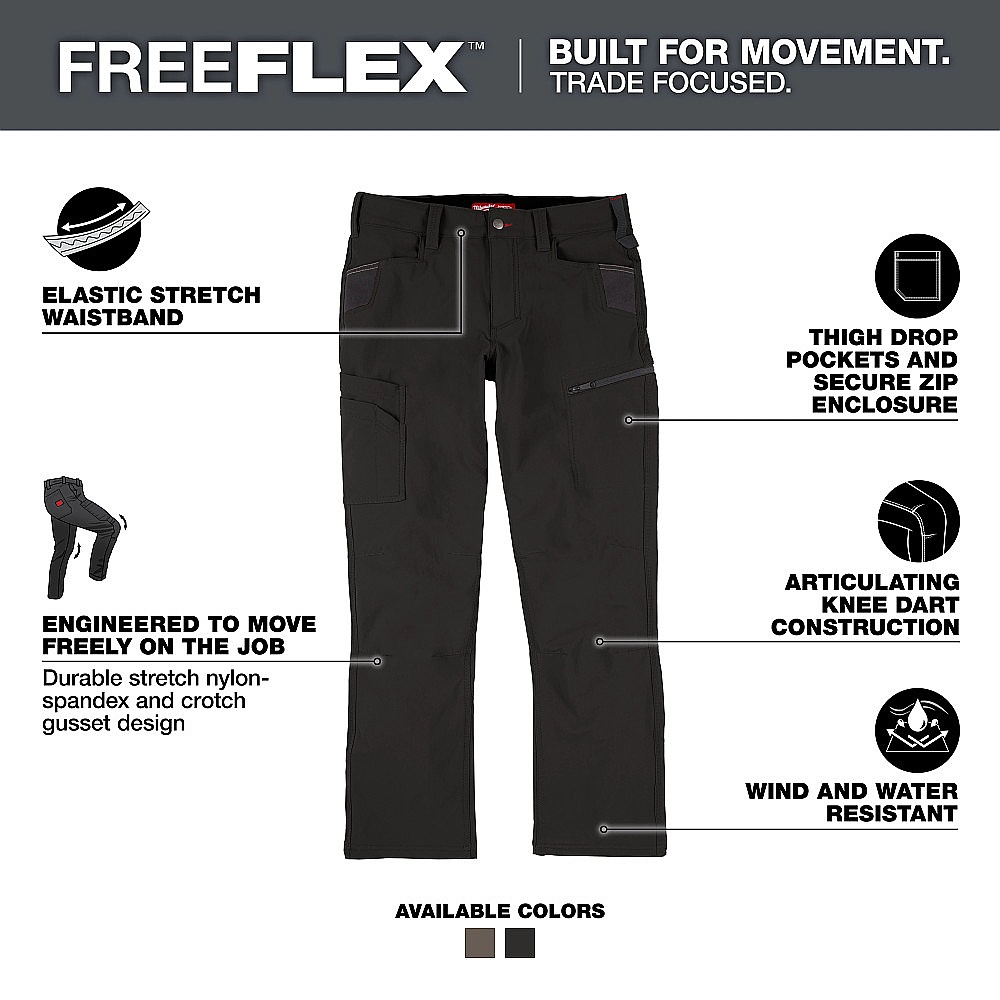Part of the MILWAUKEE® FREEFLEX™ Collection, these Tech Pants are BUILT FOR MOVEMENT. Engineered with a wind and water-resistant 7.5oz nylon/spandex blend, Milwaukee’s FREEFLEX™ Tech Pants stretch with you to move unrestricted, while not sacrificing durability. Built with a moisture-wicking stretch waistband, nylon reinforced tool clip-on zones and kick plate, and secure zipper pocket sized for tools, these Tech Pants will quickly become your year-round favorite on the job. Milwaukee® FREEFLEX™ products are developed in collaboration with feedback from users across the trades through continuous jobsite research.
