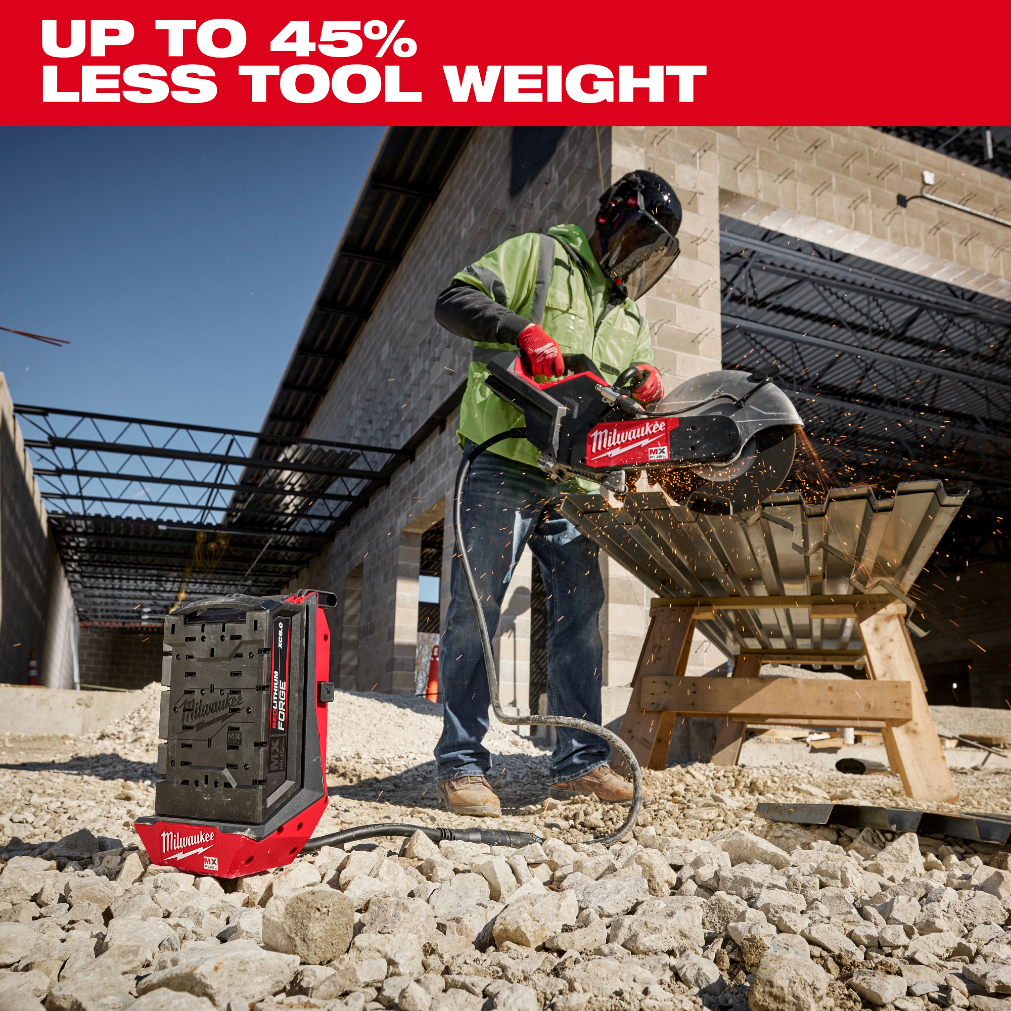 The MILWAUKEE® MX FUELâ„¢ Portable Battery Extension allows you to operate any MX FUELâ„¢ Equipment while taking all of the weight of the MX FUELâ„¢ battery pack out of your hands, delivering lighter tool weight and less fatigue on handheld equipment. The MX FUELâ„¢ Portable Battery Extension maintains peak performance, providing the same power you’d expect from any MX FUELâ„¢ Equipment. Fully compatible with all MX FUELâ„¢ batteries, this solution allows you to benefit from the most run-time by leveraging Milwaukee’s most capable battery packs without compromising on weight and ergonomics. The 8′ tether adapter gives you the flexibility to operate hand-held equipment from the ground, a lift, a ladder, or scaffolding. The backpack harness with adjustable straps and carrying handle provides easy transport. Easily remove the backpack harness as needed for use in stationary applications. Its durable construction enables use in the toughest jobsite conditions.