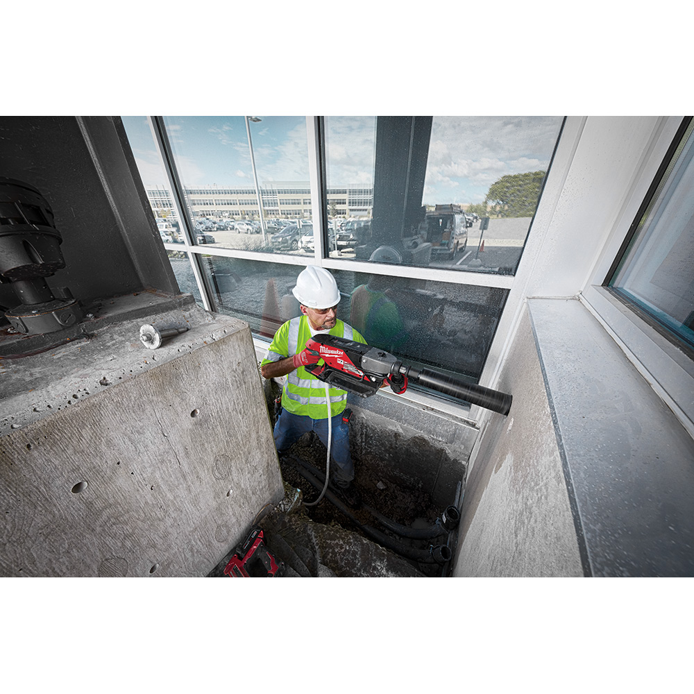 The MX FUEL Handheld Core Drill allows you to core with more confidence than ever before. A patented clutch and AUTOSTOP technology deliver a safer handheld coring experience. They provide you with maximum control and prevent over-rotation in case the core drilling machine gets bound up. The POWERSTATE Brushless Motor delivers you the power to core up to 6” holes in reinforced concrete. REDLINK PLUS Intelligence ensures maximum performance and protection from overload, overheating, and over-discharge. An onboard LED level and performance gauge provide you with maximum efficiency while coring. These features, along with the option to wet or dry core make it easier for you to core anywhere. The MX FUEL REDLITHIUM battery pack powers through concrete and block almost anywhere, without the hassle of extension cords or tripping breakers. The cordless core drill is compatible with all MILWAUKEE MX FUEL REDLITHIUM batteries, giving you the hardest working and most reliable power for equipment. The diamond core drill is ONE-KEY Compatible. You can track, manage and secure equipment from your mobile device or computer using the industry’s largest Bluetooth community tracking network. If your core drill is ever lost or stolen you can prevent tampering with remote lockout capability.