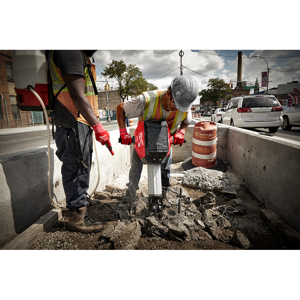 The Milwaukee MX FUEL Breaker (MXF368-1XC) delivers a Faster, Safer, Easier Concrete Demolition experience by being the most productive with the lowest vibration, lightest weight, and breaking over 2 tons per charge. The MX FUEL Breaker is the most productive with the lowest vibration on the market, designed for the professional user delivering ultimate power, durability, and productivity. The POWERSTATE Brushless Motor delivers 50 ft-lbs of impact energy that meets and exceeds that of corded competition. The MX FUEL REDLITHIUM XC406 battery pack delivers unparalleled run time that can break a 40 ft trench that is 1 ft wide and 6? thick on one charge. The MX FUEL Breaker is lightest in class, making it easier to maneuver and transport throughout the jobsite. REDLINK PLUS Intelligence ensures maximum performance and protection from overload, over heating, and over discharge. It is compatible with all MX FUEL REDLITHIUM batteries, the hardest working most reliable power for equipment. The MX FUEL Breaker is ONE-KEY Compatible: Track, manage and secure equipment from your mobile device or computer using the industry?s largest Bluetooth community tracking network. If ever lost or stolen, prevent tampering with remote lockout capability.