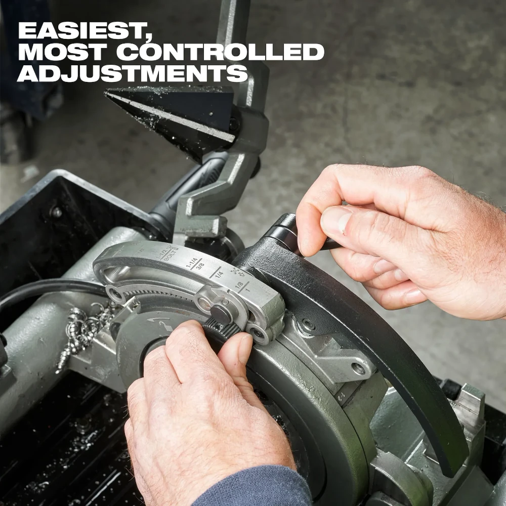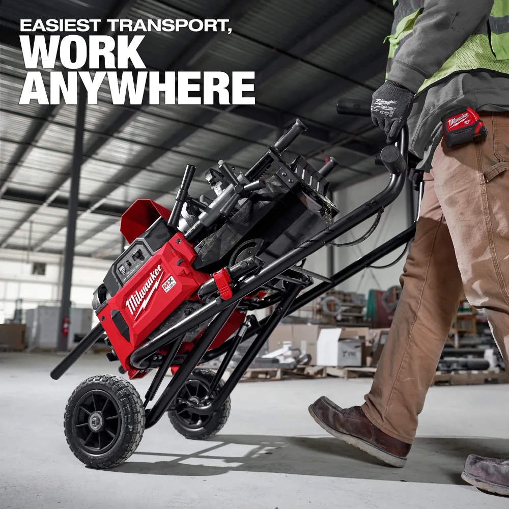 Our MX FUEL™ Pipe Threading Machine is the industry’s first cordless threading machine, designed to make your workflow easier and more productive. Powered by MX FUEL™ REDLITHIUM™ batteries, the machine eliminates the need to work near an outlet, allowing you to work anywhere – set up wherever it’s most convenient, and even in places that aren’t possible with other threading machines. Combined with a spring-assisted cart for easiest transportation and set up, plus a self-contained oil reservoir to keep oil off the ground. The MX FUEL™ Pipe Threading Machine allows you to easily move with your work, eliminating wasted time walking back and forth on the jobsite. For jobs requiring threading and grooving, the machine’s second hammer chuck enables the connection of roll grooving attachments without requiring any teardown or additional adapters, saving set-up time during every changeover. The Milwaukee® NPT Pipe Threading Die Head w/Micro-Adjust not only automatically releases for each thread, but the Micro-Adjust knob enables the easiest, most controlled die adjustments for consistent quality threads over time. The MX FUEL™ REDLITIUM™ XC406 battery pack delivers up to (140) ¾” cut, ream, and threads per charge, providing the runtime to work all day, and the power to thread up to 2” black iron pipe, stainless steel, rigid metal conduit (RMC) and more. Once the job is complete, the machine can be stored vertically upright without spilling, reducing the storage footprint. The threader is compatible with ONE-KEY™ Technology that wirelessly connects to a smartphone to track the tool’s location, manage it in inventory, and lock the tool out for added security and protection to your investment.