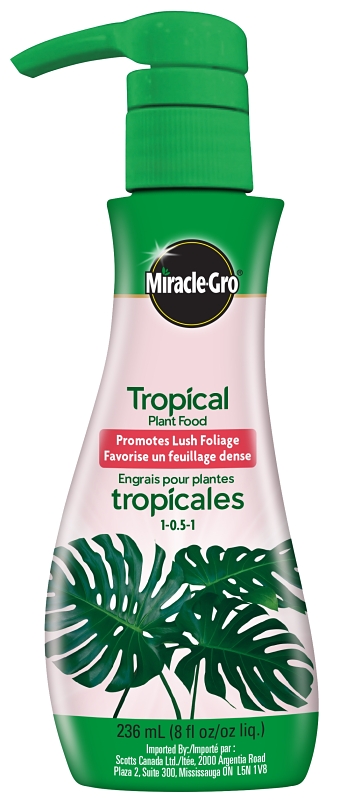 Miracle-Gro 3023105 Tropical Plant Food, 236 mL, Liquid, 1-0.5-1 N-P-K Ratio