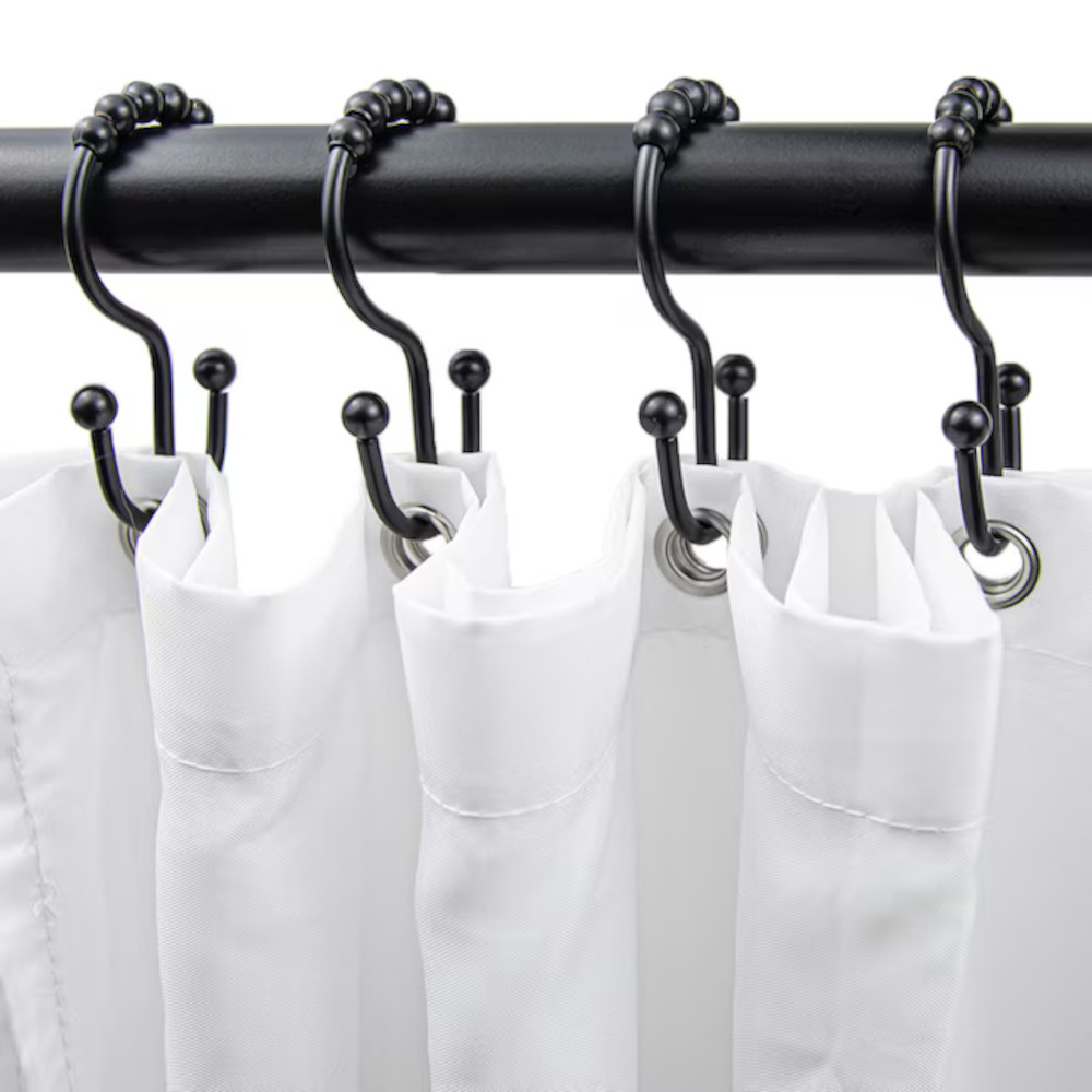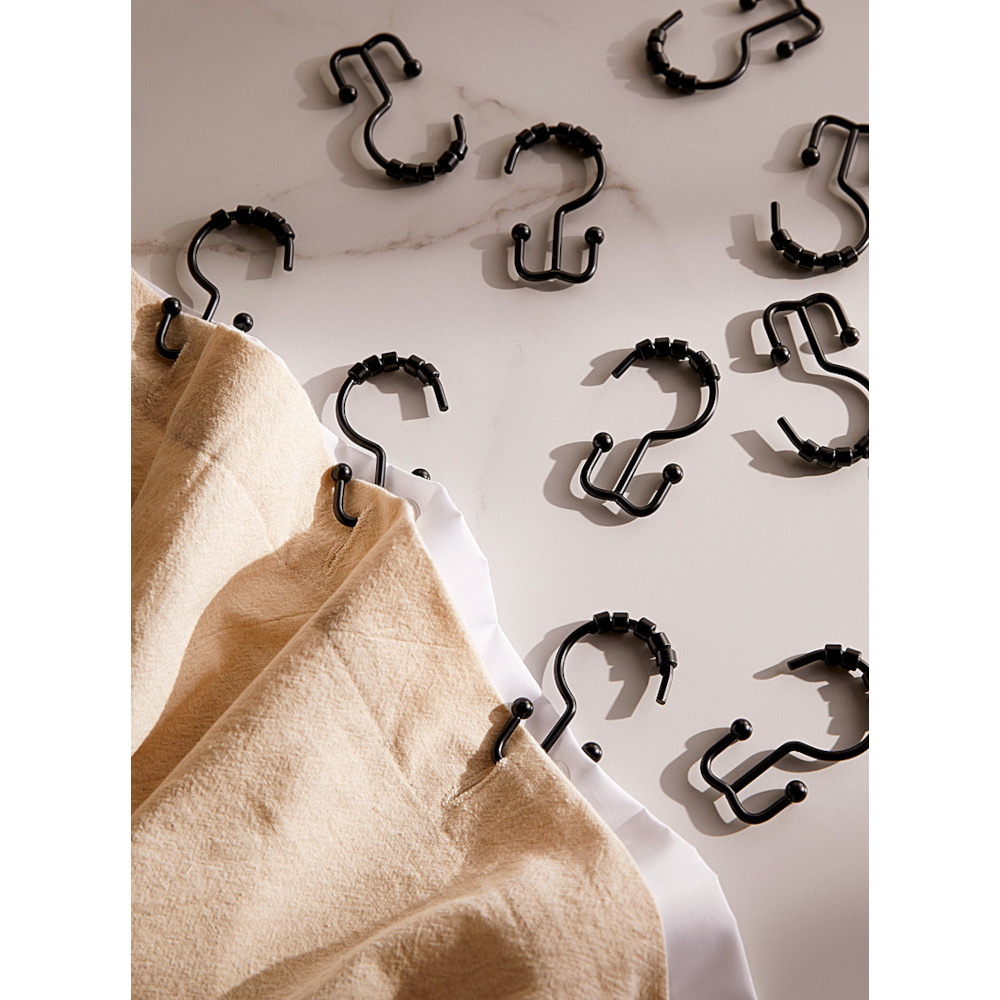 Moda At Home 302136-BLK Annex Double Shower Curtain Hook, 12 Pack – Matte Black