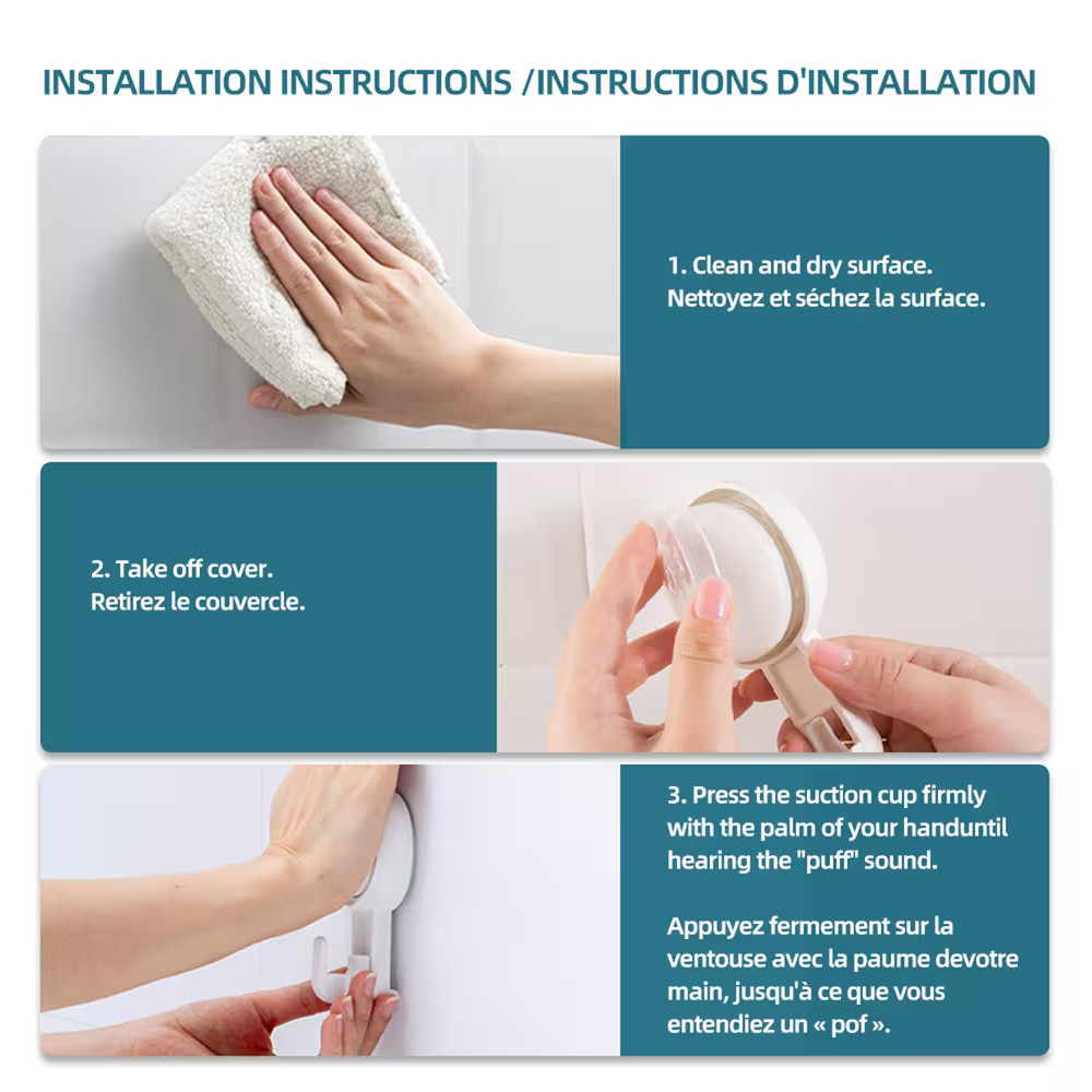 Puts things within easy reach without having to drill any holes into your walls. The powerful suction cups wont let go of smooth surfaces like glass or tiles unless you want them to. The patented TPE material seals better and fills out small uneven spots on the wall so air can’t get in. Strong enough to hold up to 11 lbs and perfect caddy size for your necessities. Designed to mount onto your wall without making holes, this holder is installed by just one press of the middle suction cup and releases with the same procedure. The suction cup works best on ceramic tile, glass, metal, and wood requiring no tools to install.