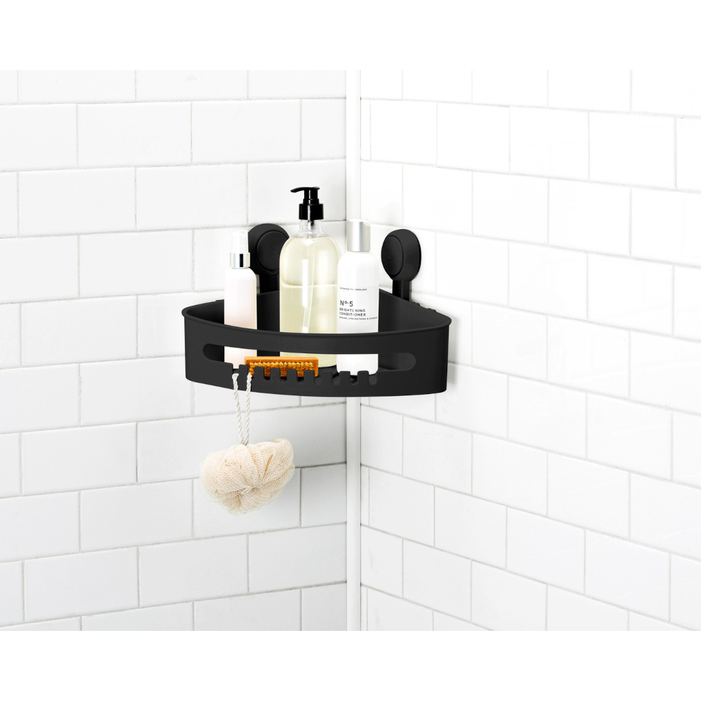 Moda at Home 305006-BLK Gel-Suction Lock Corner Shower Basket – Matte Black