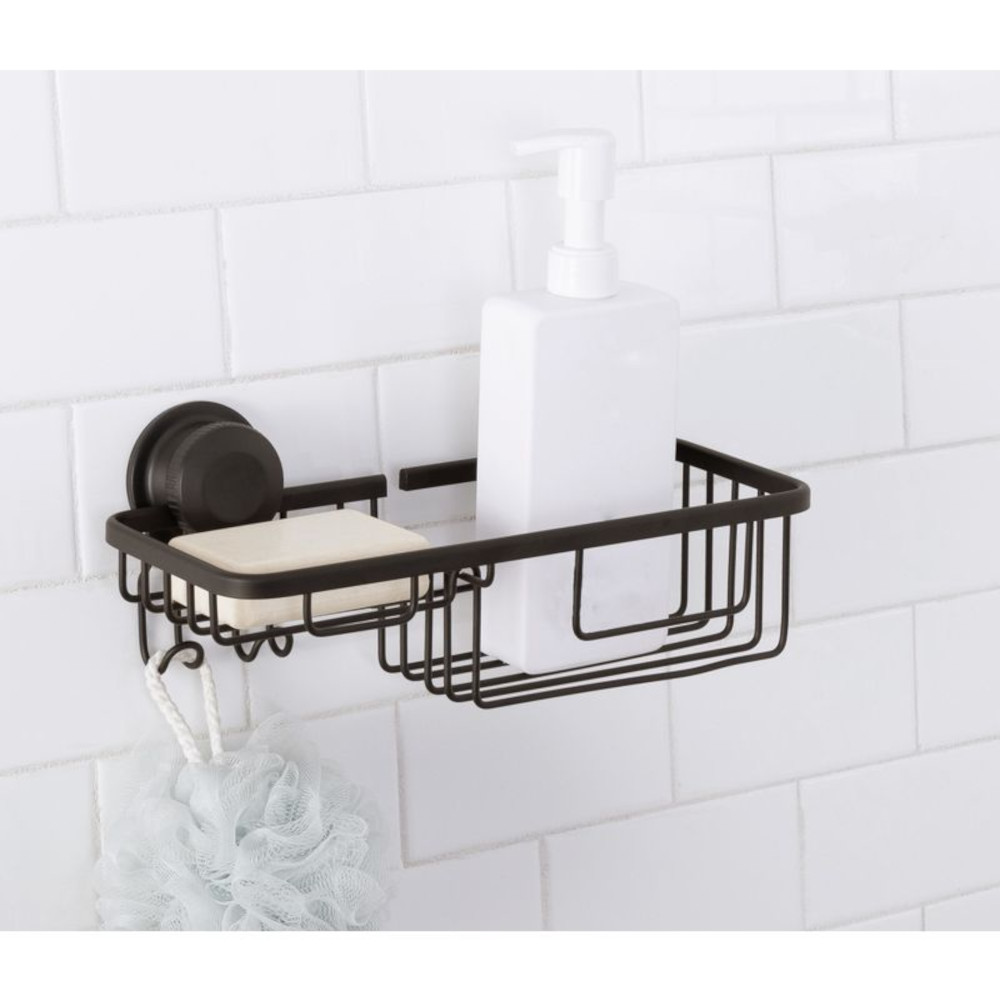 Moda at Home 305008-BLK Aluma Suction Lock Shower Basket – Black