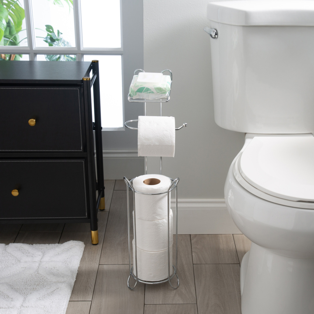 The Dunbar Toilet Paper Holder adds a clean, modern touch to any bathroom while keeping essentials close at hand. Made from durable metal with a polished chrome finish, it’s designed to stand up to everyday use while maintaining a sleek, elegant look. Its practical format keeps toilet paper secure and within easy reach, making it a simple upgrade that blends style and function.