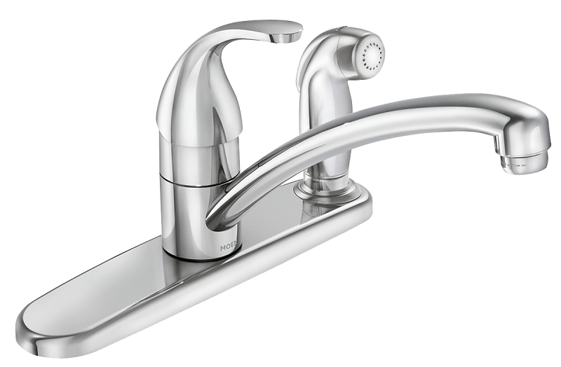 With its smooth curves and minimalistic design, the Adlerâ„¢ one-handle faucet seamlessly blends with a variety of kitchen decor preferences. The one-handle lever makes it easy to adjust the water and a matching in-deck side spray is included to make cleanup simple. Install with ease thanks to the new tool-free faucet installation. Adler installs up to 40% faster versus Moen faucets without the new installation feature. It mounts with a deckplate, accommodating three-hole installation options.