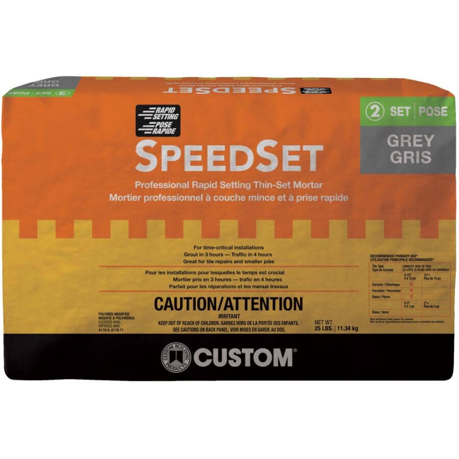 A quick-setting, polymer-modified mortar, SpeedSet is excellent for commercial use and cold temperature installations, as well as small residential jobs and repairs. Its quick-curing properties allow for grouting in as little as 3 hours and light traffic in 4 hours.
