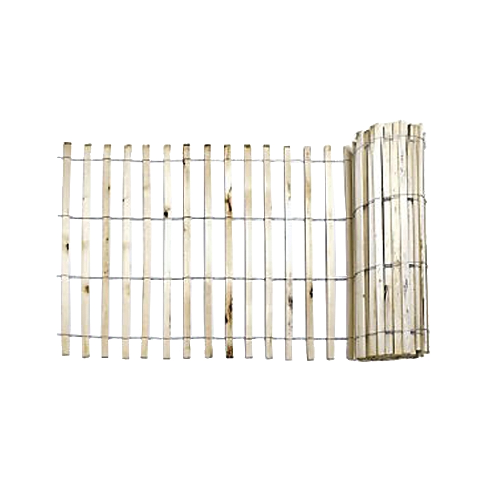 Traditional wood lathe slatted fence for snow and sand control. 4 strands of 14-ga twisted wire support 3/8 in x 1-1/2 in natural wood slats.