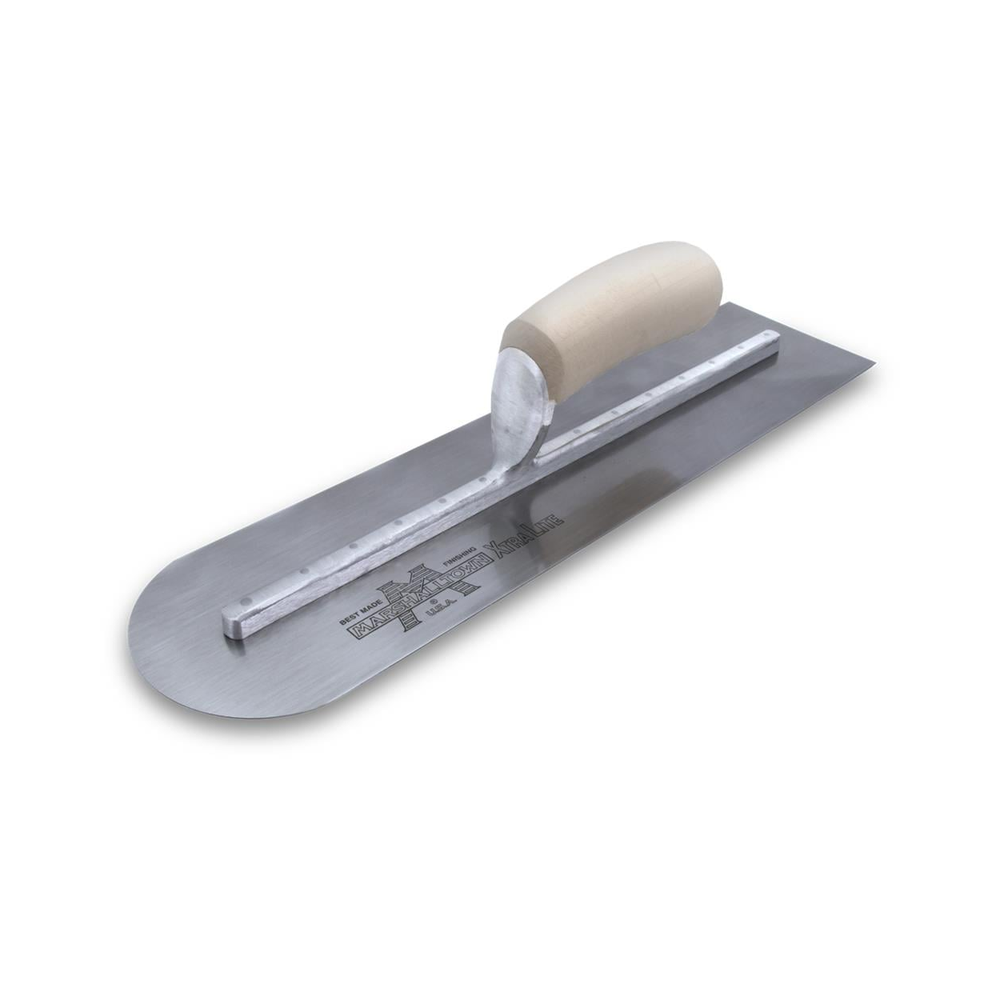 The MARSHALLTOWN Rounded Front Finishing Trowels give you the capability to use both a rounded and square edge trowel. The rounded side decreases the chance of leaving a groove and the square is perfect for edge work, both leading to a quality finish in your concrete. It’s created from the highest grade, hardened and tempered, spring steel. The aluminum alloy Xtralite? mounting has a lightweight feel but stays durable through any job. This trowel comes in a variety of blade materials, blade sizes, and handle material. Pick the right variation for your needs and have a quality tool that is Made in the USA with Global Materials.