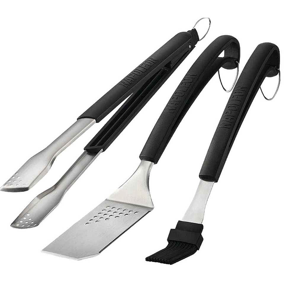 Napoleon’s 3 Piece Toolset is made from cast stainless steel with comfortable soft-touch handles for a non-slip grip. The extra-long spatula is perfect for steaks and other large food with its bladed tip and serrated edge. The easy-lock stainless steel tongs are always ready for action, their comfortable grip making it easy to hold and move your grilled delicacies. Don’t forget to splash on the sauce with the silicone basting brush. Be the boss of your grill with this 3 Piece Toolset. FEATURES. Toolset features soft-touch handles for a comfortable non-slip grip. Heat resistant silicone basting brush. Spatula features serrated edge for bladed tip. DIMENSIONS. 50 H x 7.75 W x 24.75 D.