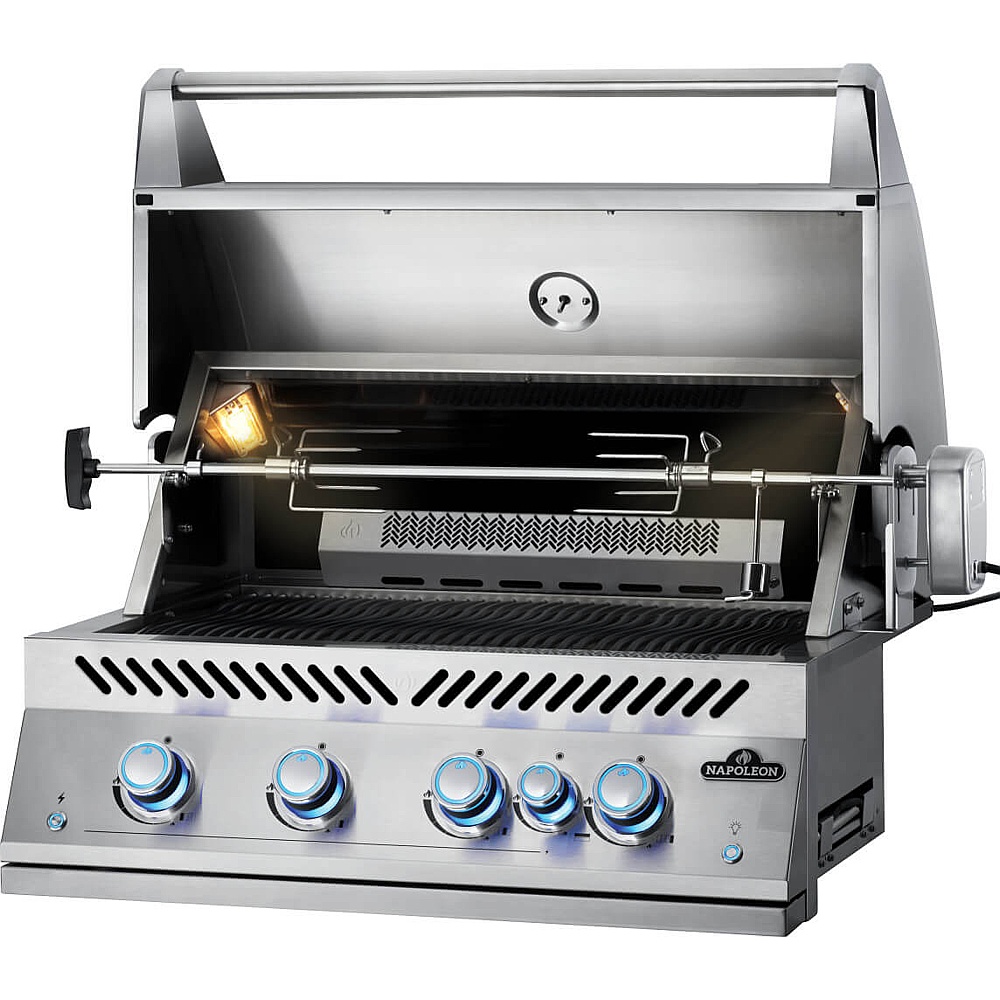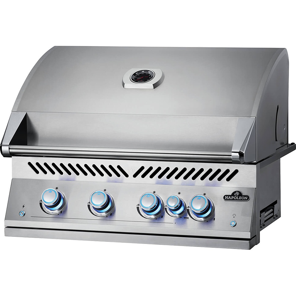 The Built-In 700 Series 32″ Gas Grill with Rear Infrared Burner provides the high-quality grilling you have come to expect from Napoleon’s gas barbecues, built seamlessly into your ideal outdoor kitchen. The premium stainless construction ensures stylish longevity and unparalleled performance. Thick, 9mm stainless steel cooking grids are virtually maintenance-free and provide iconic WAVE™sear marks. Precise temperature control and the ACCU-PROBE temperature gauge ensure that you’re searing, smoking, roasting, rotisserizing, and baking with ease. The JETFIRE ignition system lights burners quickly with a jet of flame. Enjoy ambiance and safety, the control knobs SafetyGlow a glorious blue changing to red when burners are in use. The Built-In 700 Series 32″ Gas Grill has been designed specifically for ease of installation with integrated trim and longer electrical wiring for no design and functionality restrictions on install.