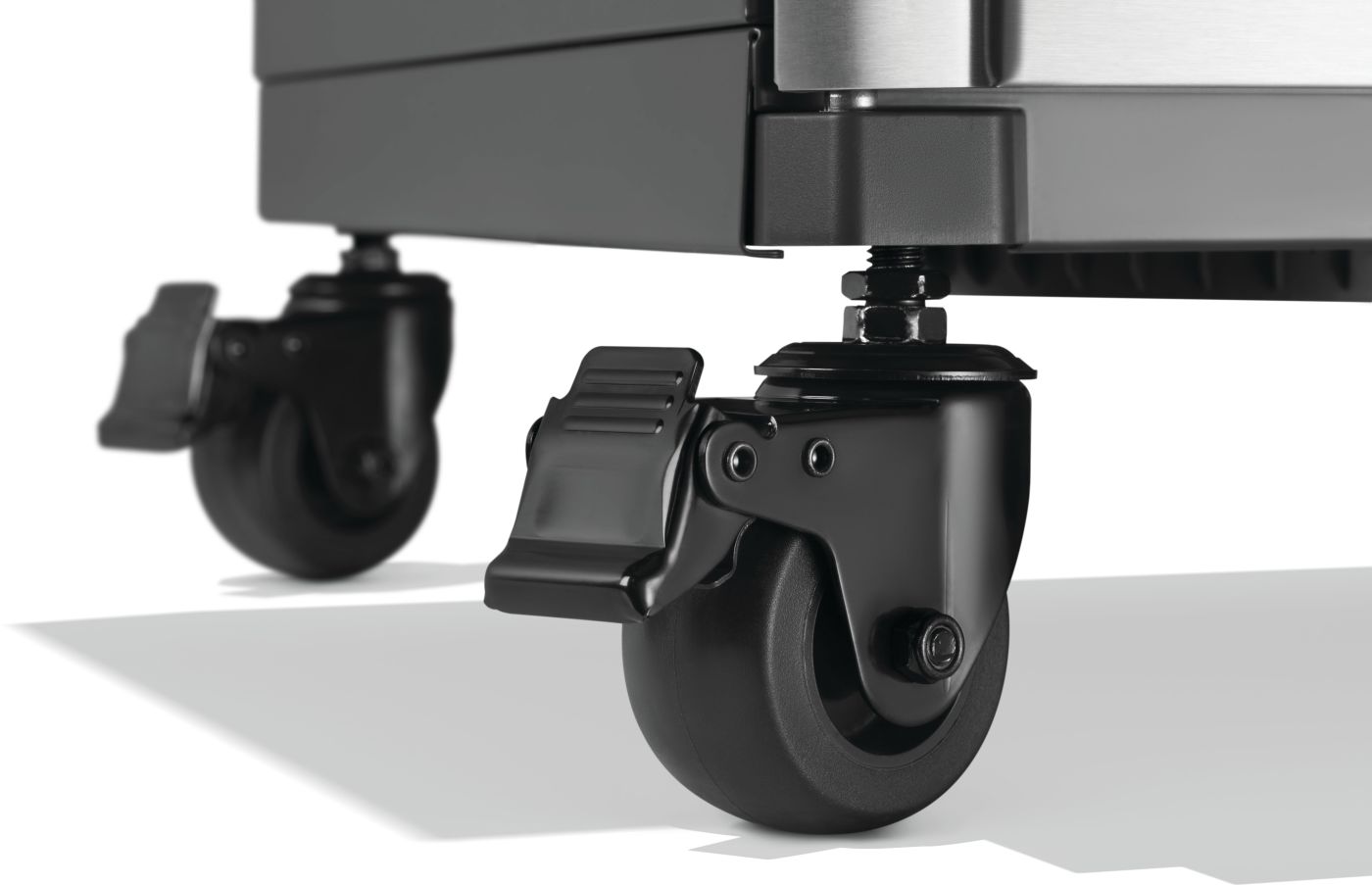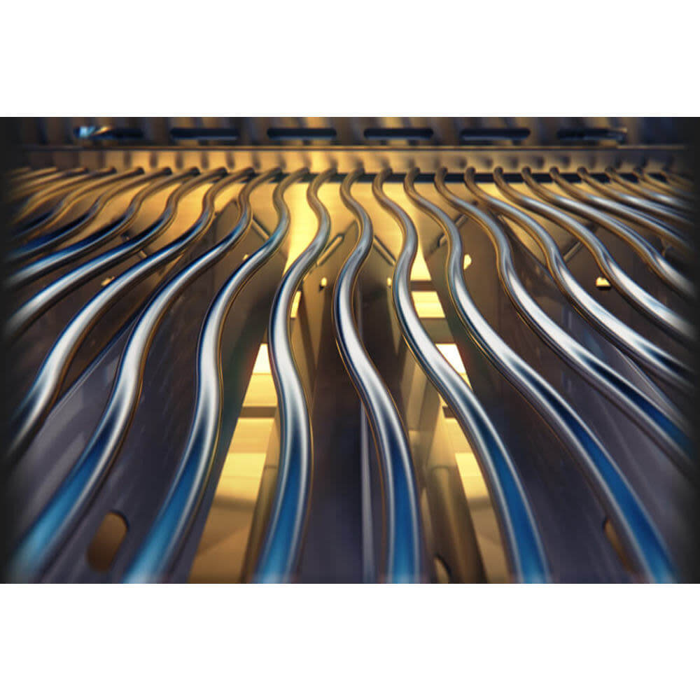 The Napoleon Prestige 665 Gas Grill with Infrared Side and Rear Burners is the total grilling package; with a stunning all stainless steel hood and stainless steel construction, this full sized cart model barbecue has the capabilities of a full outdoor kitchen. With five main burners, an infrared rear and side burner, this grill can cook meals using eight unique cooking styles. You’ll know it’s a Napoleon with the Iconic WAVE cooking grids for those distinctive sear marks. Not just durable on the outside; under the lid is the same quality stainless steel used for the tube burners, dual-level sear plates and cooking grids. The stainless steel sear plates provide extra surface area for any drippings from your food to vaporize, avoiding flare-ups. Never leave your barbecue on again as all the Prestige series grills come with the SafetyGlow Feature where the control knobs glow red when the burner is on. Enjoy evenly cooked restuarant style meals with the rear infrared burner and rotisserie.