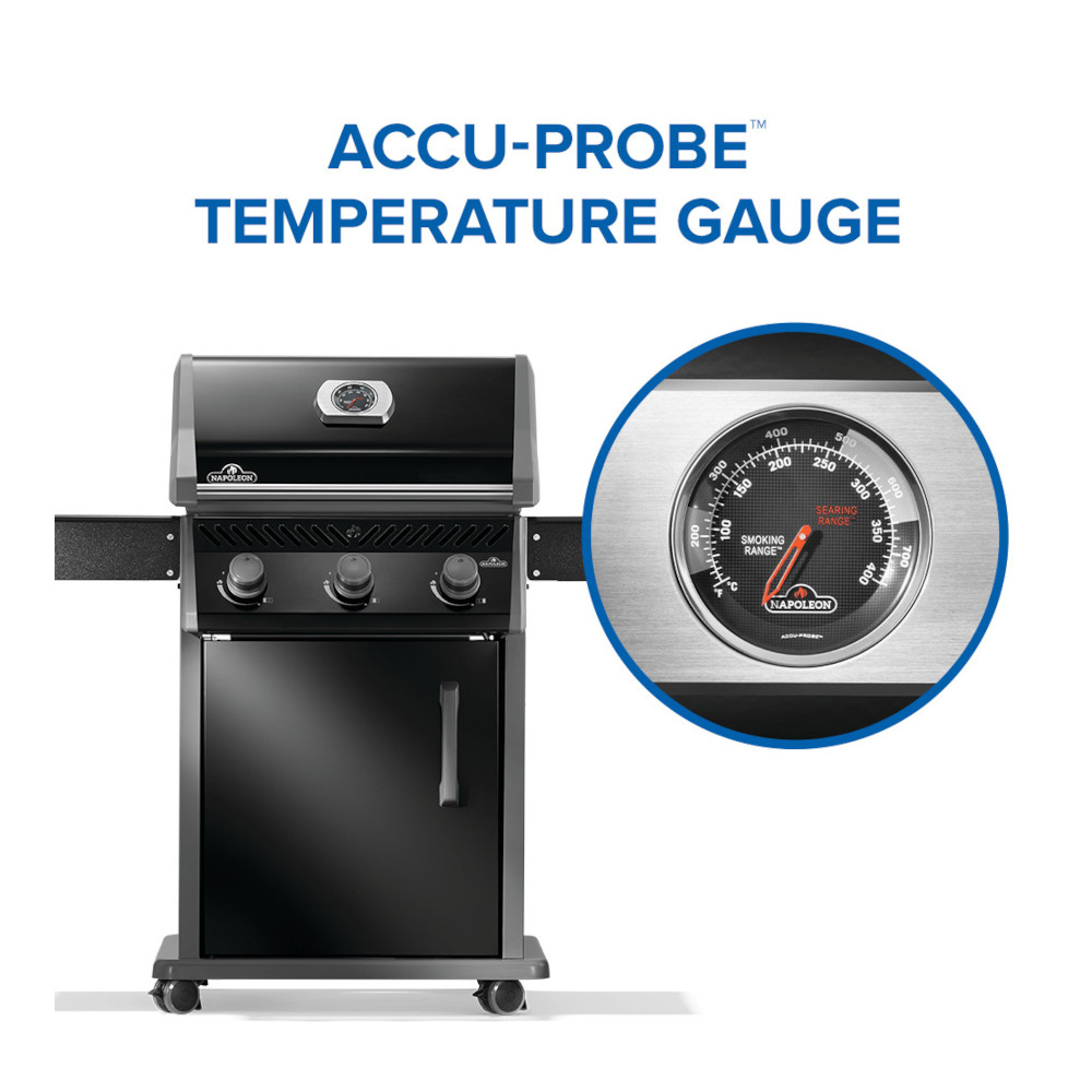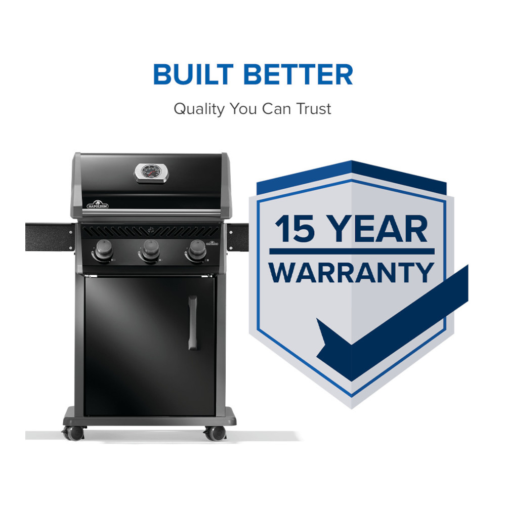 Ignite your grilling passion instantly with the reliable battery-free ignition system, ensuring quick startups whenever inspiration strikes. And with locking caster wheels, you can move this exceptional grill effortlessly across your patio or deck, enjoying outstanding grilling performance in any desired space. The Napoleon Rogue 425: where innovation meets accessibility for the ultimate grilling experience.