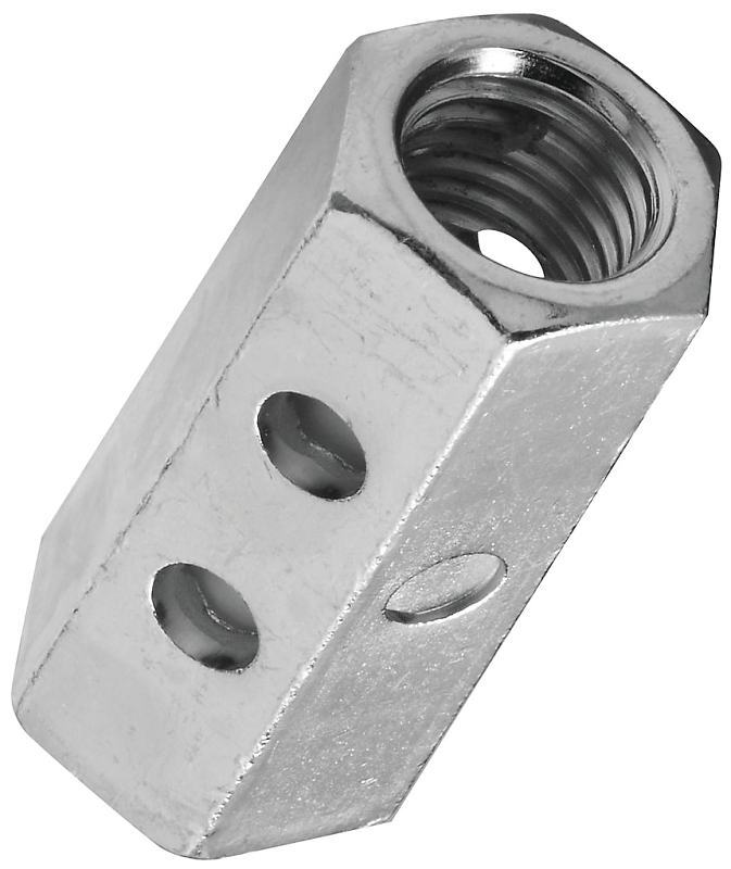 National Hardware 4003BC Coupler, Thread Type: UNC Coarse, Thread Size: 1/2-13, Hex Size: 0.61 in, 3100 lb Tensile Strength, Thread Length: 1-3/4 in, Steel, Zinc, Dimensions: 1-3/4 in L