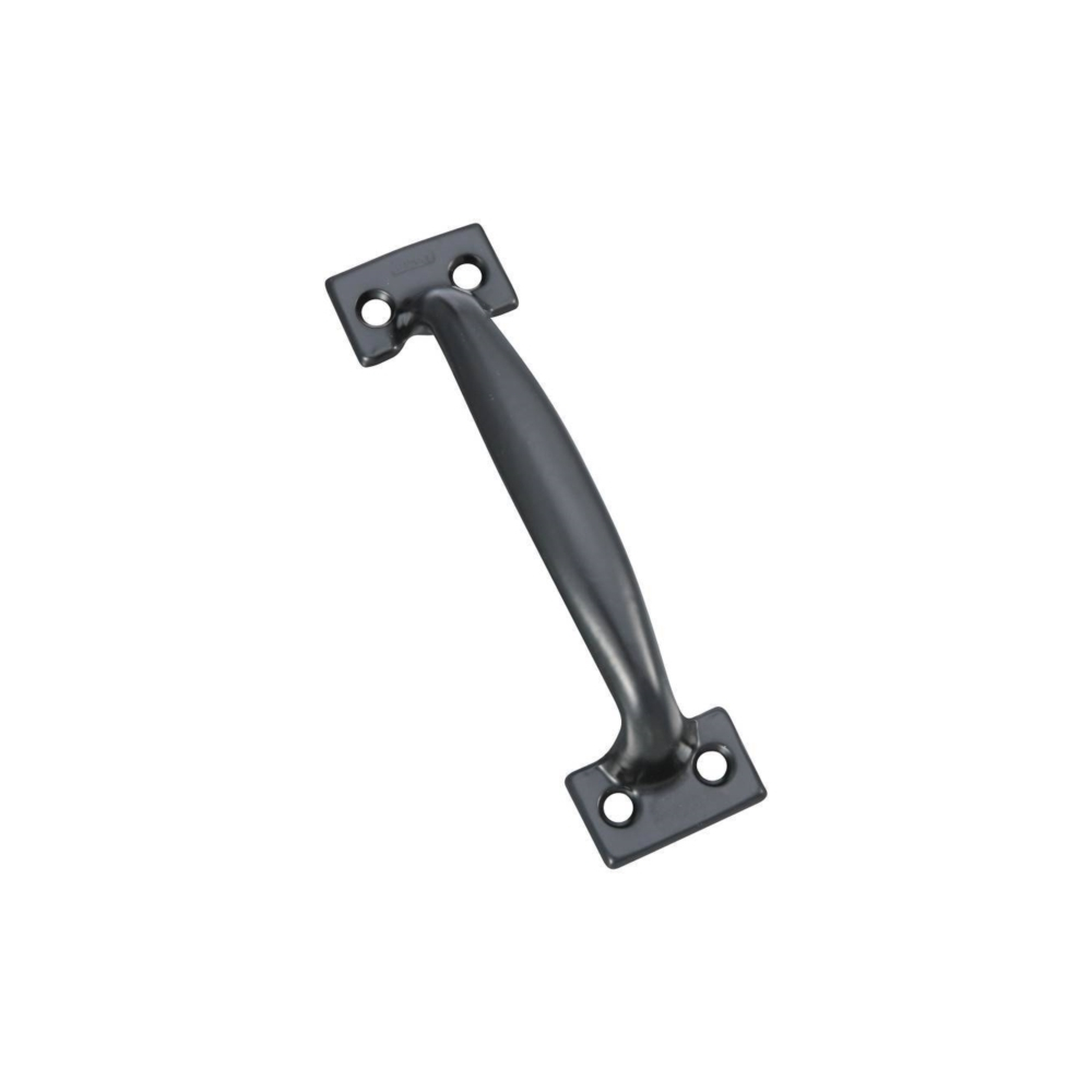 National Hardware Door Pull, Projection Size: 1.62 in, Plate Size: 0.14 in, Grip Thickness: 0.46 in, 1-3/4 in W, 1.62 in D, 6-1/2 in H, Black, Steel, Fastener Type: Screw, Includes: (4) #8 x 5/8 in Flat Head Wood Screws