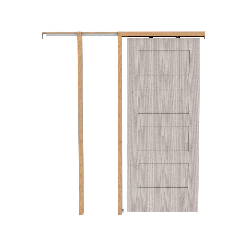 National Hardware Pocket Door Hardware, Door Thickness: 3/4 to 1-3/4 in, Aluminum/Particle Board/Steel, Includes: (1) Header and Track Assembly, (4) Jamb Stiffeners, (2) Floor Brackets, (1) Door Guide Set, (2) Snap-in Door Plates, (2) Snap-in Hangers, (1) Bumper, (1) Wrench