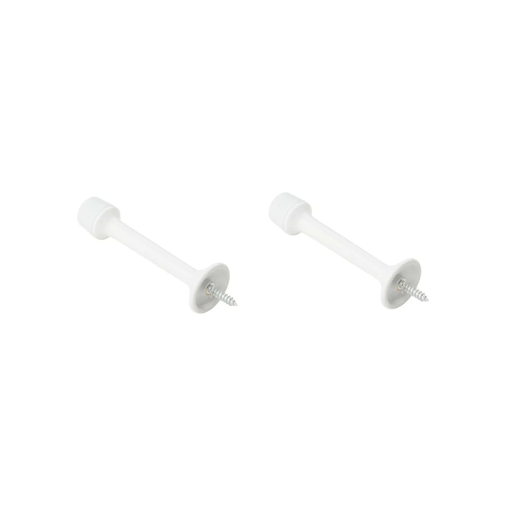 National Hardware Door Stop, Projection Size: 3 in, 3-1/2 in L, Die-Cast Zinc/Rubber, White, Baseboard, Wall Mounting, Includes: Screws