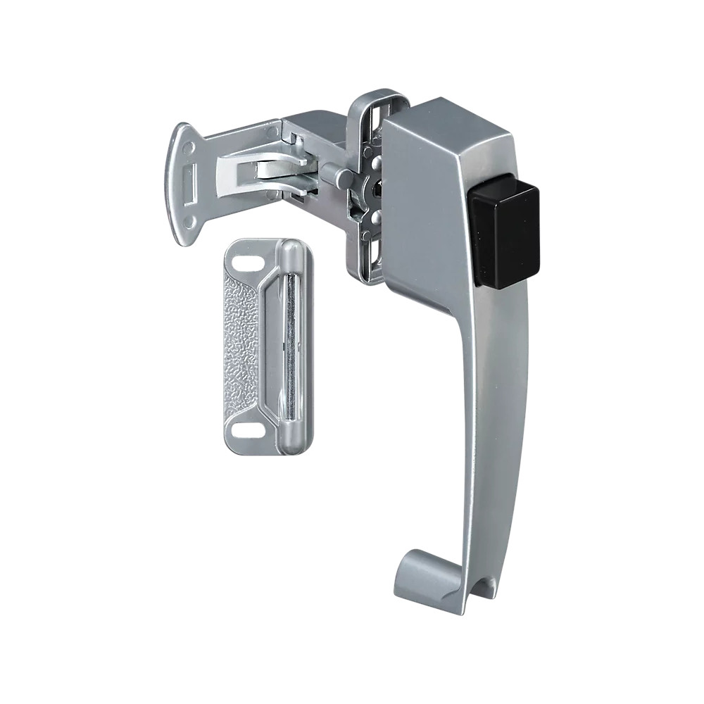 National Hardware V1316 Pushbutton Latch, Hole Spacing: 1-3/4 in, Zinc, Door Thickness: 5/8 to 2 in, Screw Mounting, Suitable for: Wood/Metal Screen, Storm Doors, Includes: Spring-Loaded Strike Plate, Mounting Screw