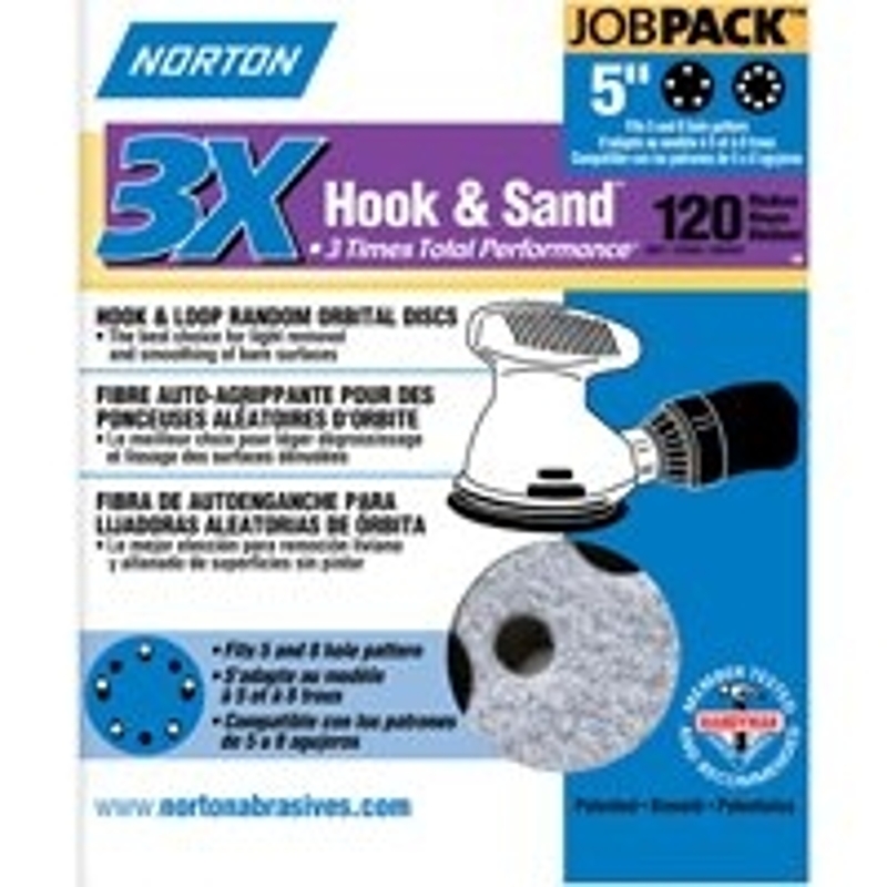 NORTON 04035 Sanding Disc, 5 in Dia, 11/16 in Arbor, Coated, P120 Grit, Medium, Alumina Ceramic Abrasive, Spiral