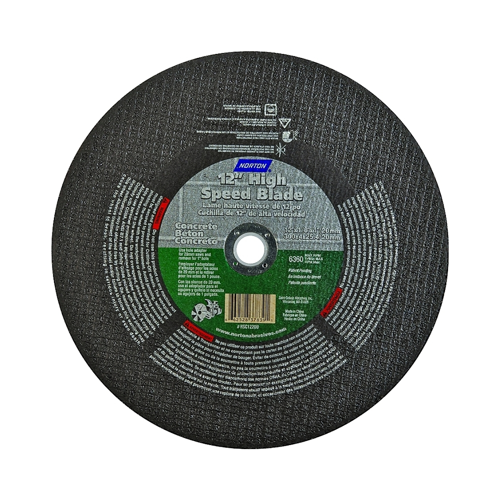 NORTON 66252837839 Cut-Off Wheel, 12 in Dia, 1/8 in Thick, 1 in Arbor, 24 Grit, Very Coarse