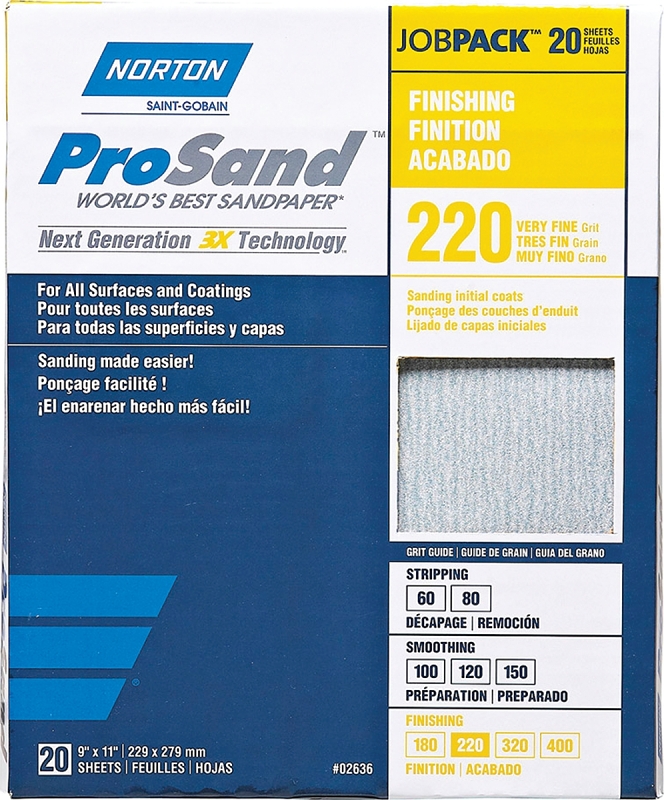 With a water-based, non-pigmented stearate coating that offers an open coat with excellent resistance to loading and clogging, this ProSand A259PS fine grit paper sheet is made without color dye to prevent color transfer. The premium, heat-treated abrasive cuts faster and lasts longer than 3X technology and the latex saturation, fiber reinforcement and increased weight offer tear resistance and grain retention while still being flexible enough to fold. Use this sandpaper to finish and prepare the surfaces of hard and soft carbon steels, soft metals, titanium, super alloys, hard and softwoods, fiberglass and composites.