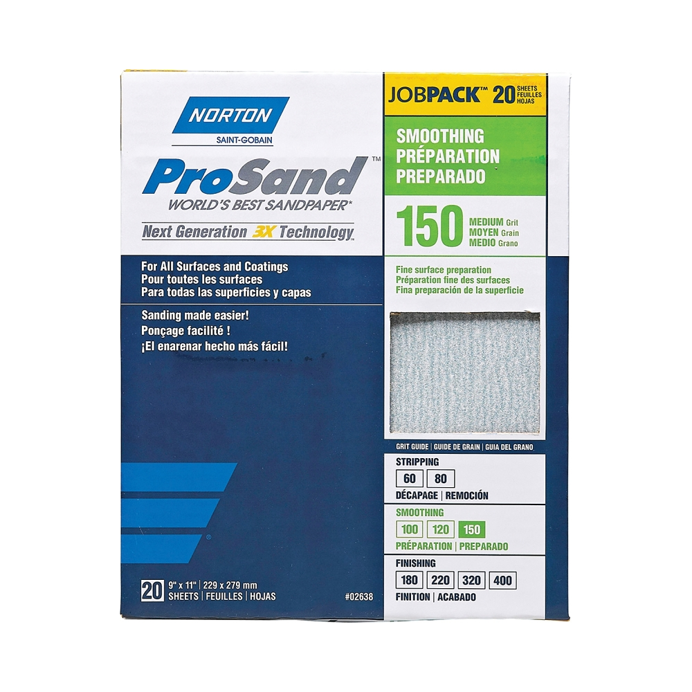 Norton 07660768171 11" x 9" 150 Grit Medium ProSand Sanding Sheet, 20 Pack