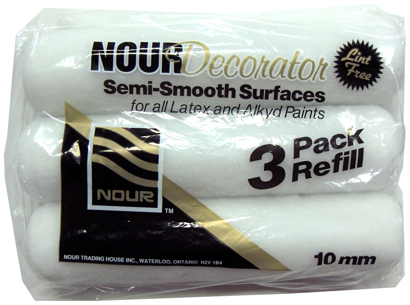 Nour Roller Cover Refill, 10 mm Thick Nap, 240 mm L, Nylon/Polyester Cover, Core Material: PVC, Surface Type: Semi-Smooth, Paint Type: Alkyd, Latex