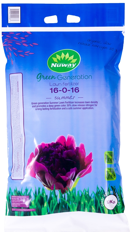 50% organic, slow release nitrogen, phosphorous and nitrate free. Green generation Summer Lawn Fertilizer increases lawn density and promotes a deep green color.