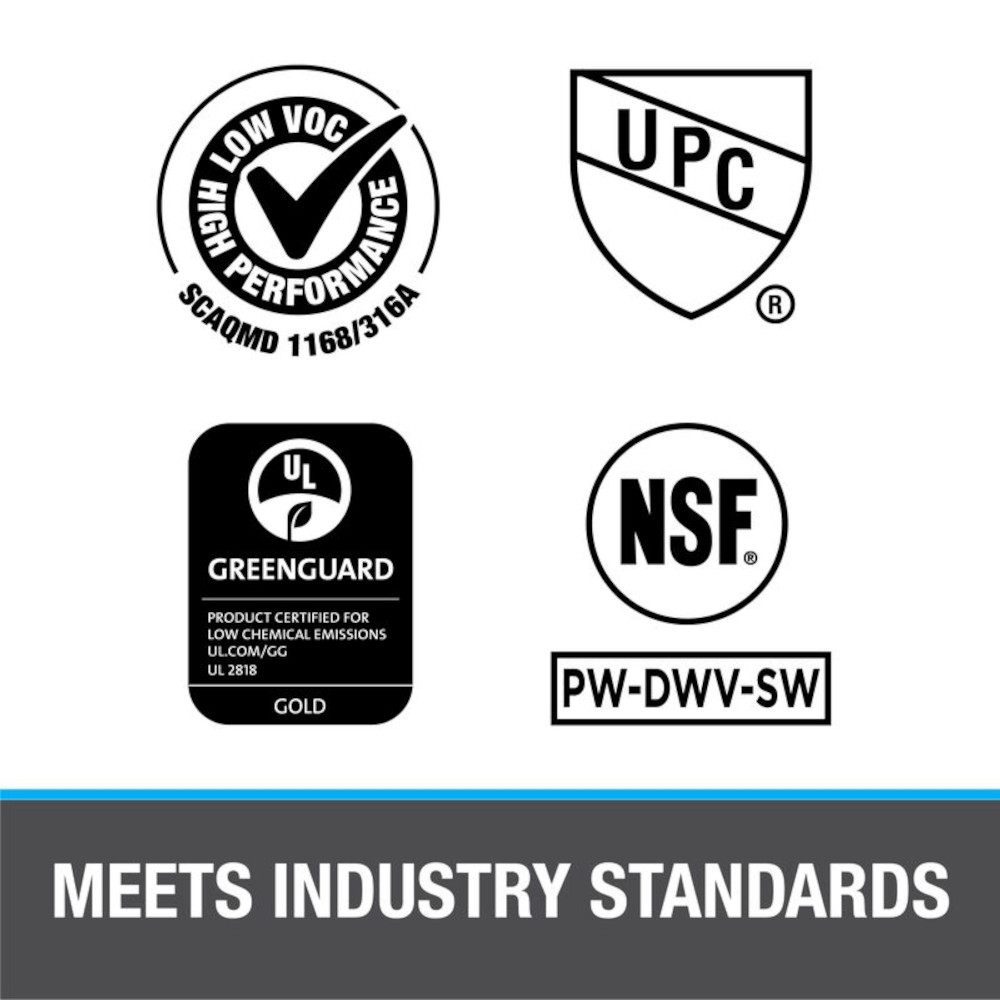 - Meets ASTM Standard D2564 and complies with NSF/ANSI 61 health effects requirements
