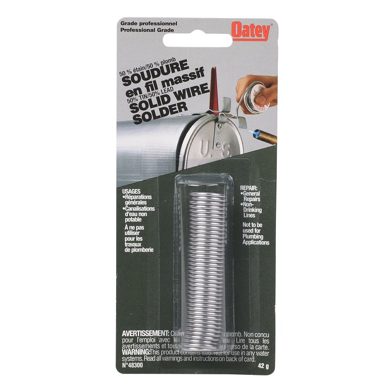 Oatey Wire Solder, Net Content: 42 g, Carded, Solid, Silver Gray, Compositions: Tin, Lead, Melting Point: 182.22 to 237.78 deg C, Relative Density: 9 to 11