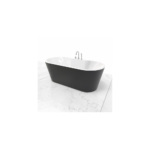 • Drain and overflow with black finish included, off-center from the bath near the bath