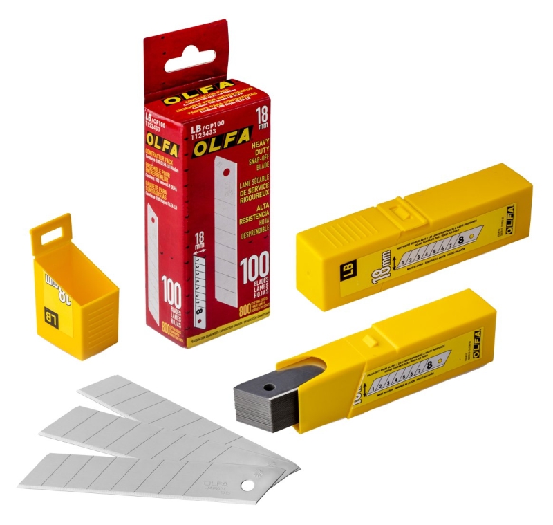 The Olfa 18 mm heavy-duty silver snap-off blade is manufactured from high-quality Japanese tool steel. These professional blades deliver durable, lasting performance. Each blade is precision honed for unparalleled sharpness and edge retention. With eight segments per blade, a fresh sharp edge is always available quick and easy.