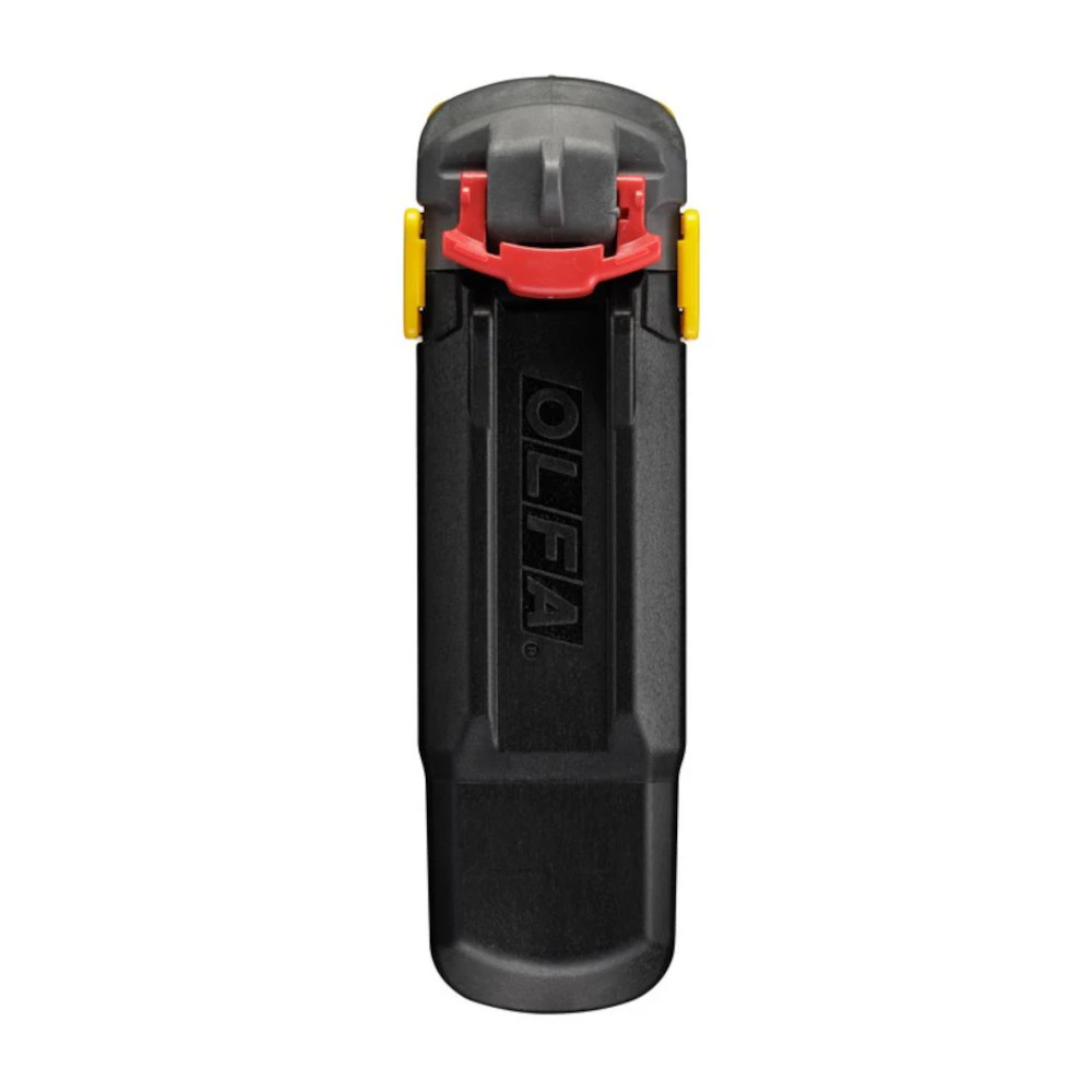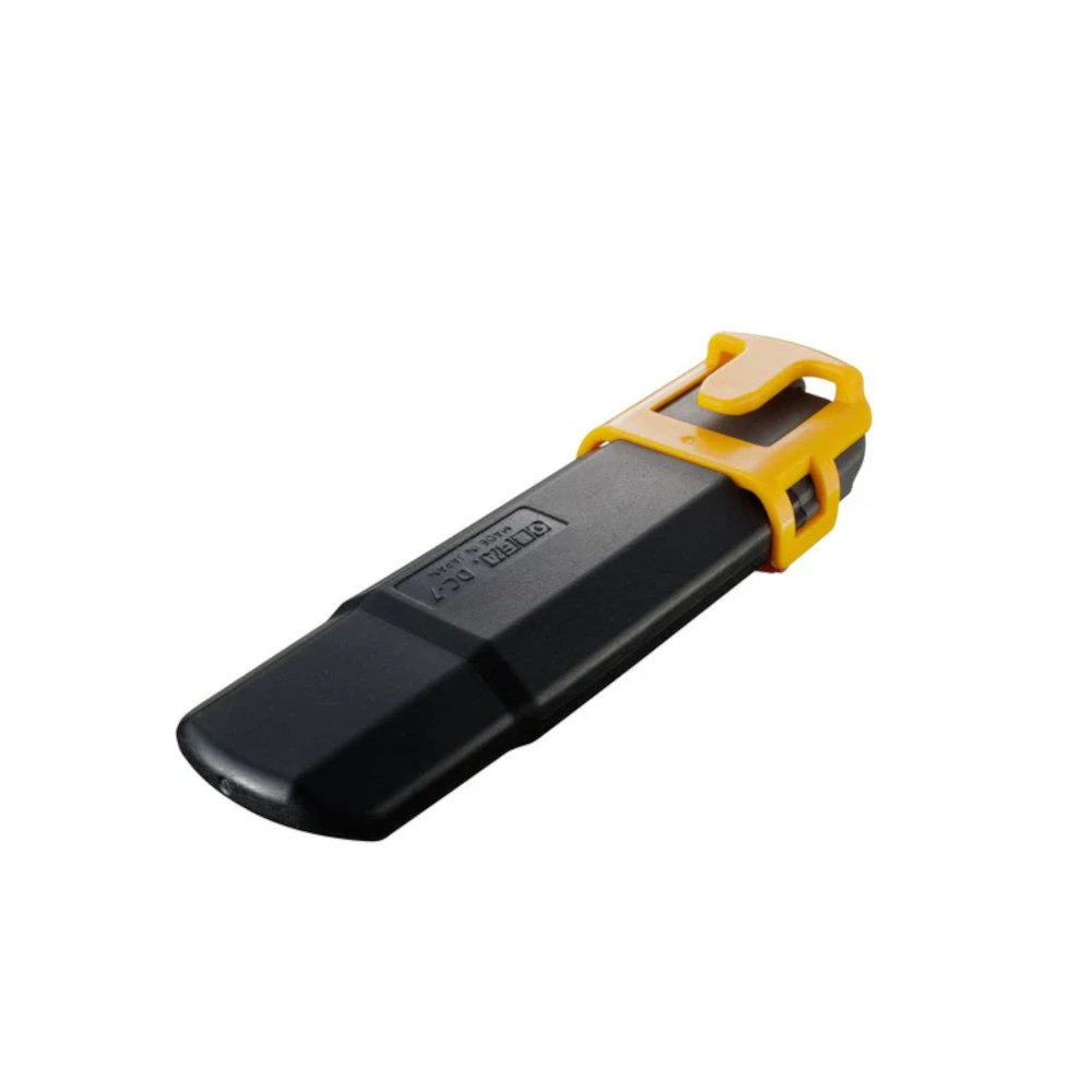 Keep your workspace clean and your hands safe with the OLFA DC-7 Slim Blade Disposal Case. Designed for pros who use snap-off utility knives daily, this slim, durable case provides a secure way to snap and store used blade segments. The arched snapping slit and sloped guide allow for smooth, controlled blade removal, while the locking cover prevents spillage and enhances user safety. Made from lightweight, acetone-resistant, fiberglass-reinforced composite, the DC-7 fits comfortably in your pocket or clips onto your tool pouch for easy access on the go. Ideal for use with 9mm, 12.5mm, and 18mm OLFA blades.