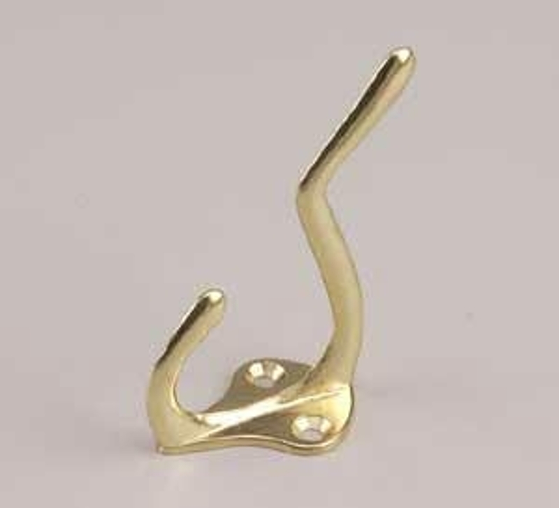 Onward 224BV Light-Duty Coat Hook, 50 mm H x 27 mm W Dimensions, 10 kg, 2-Hook, Metal, Bright Brass