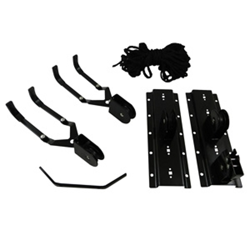 Maximize your storage potential with this bicycle lift. The pulley system takes the ease out of lifting. A safety lock helps prevent accidental release and falling down.
